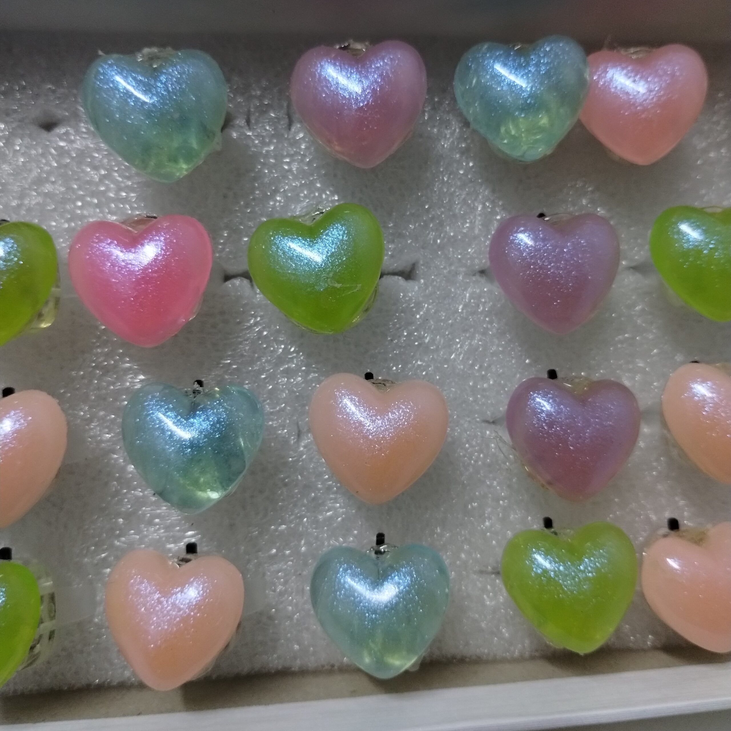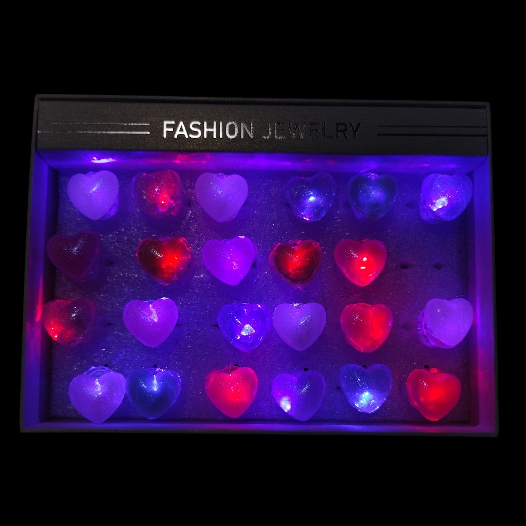 Anillos corazón LED de resina, un accesorio súper llamativo y original para destacar en cualquier fiesta o evento. Su diseño translúcido con acabado brillante permite que la luz se expanda creando un efecto luminoso increíble.