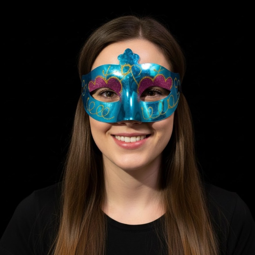 Este antifaz estilo veneciano con brillos es el accesorio ideal para darle un toque elegante y misterioso a tu fiesta.
