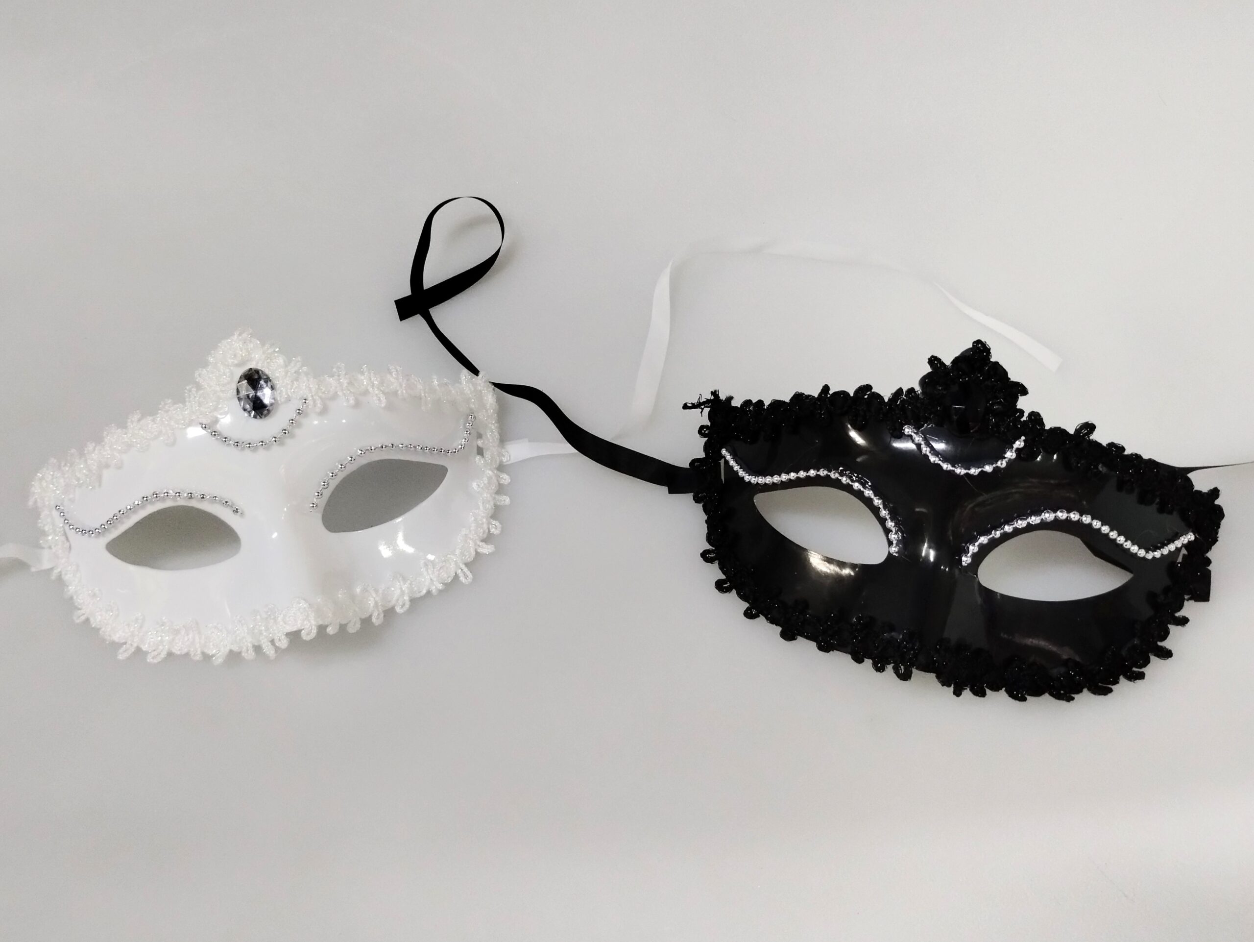🔹 Máscara de plástico con detalles de bordado en tela