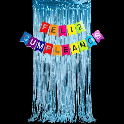 Cortina Metalizada de 2mts x 1mt. (plateado, dorado, turquesa y rosa – seleccionar color)
