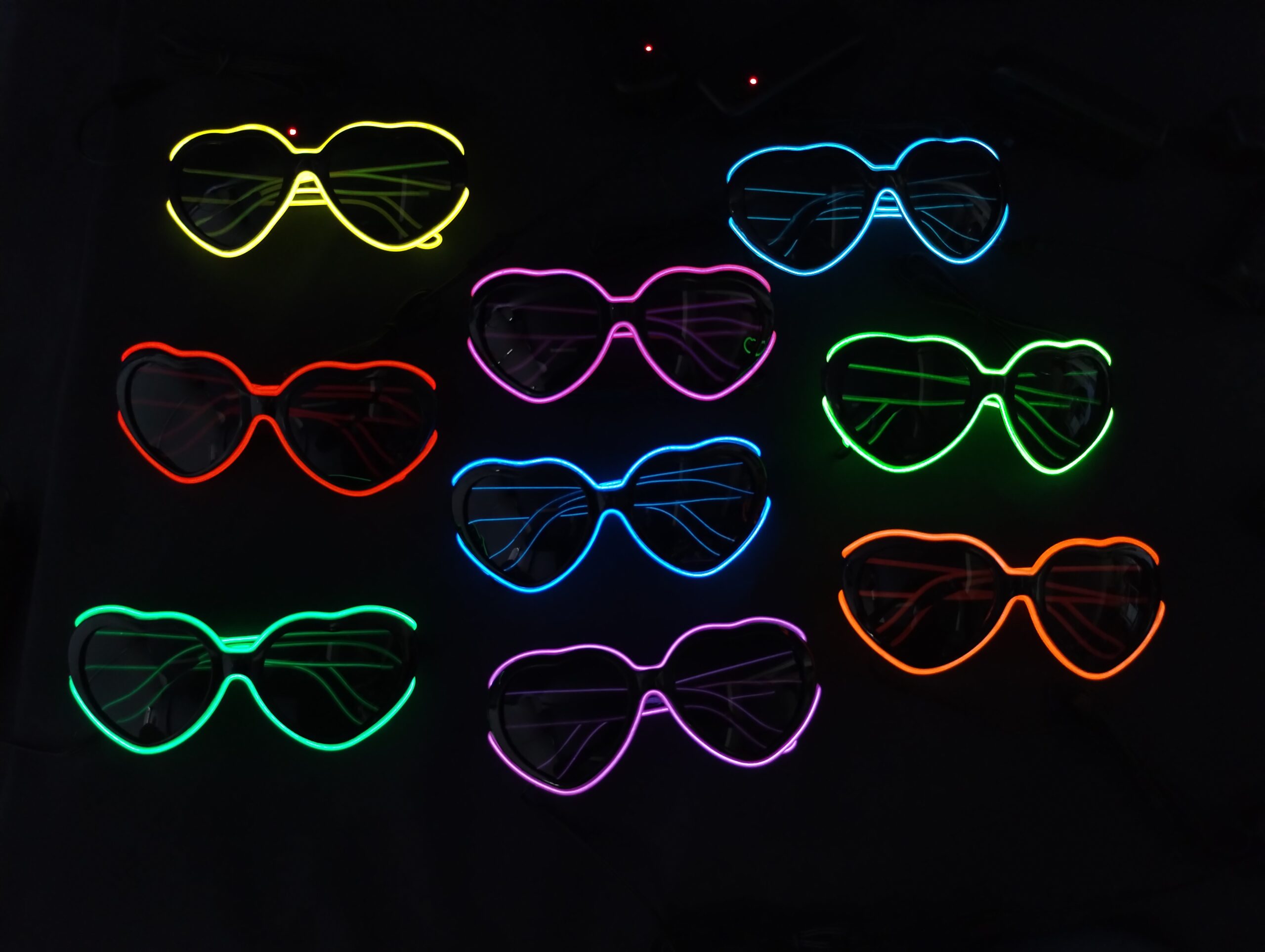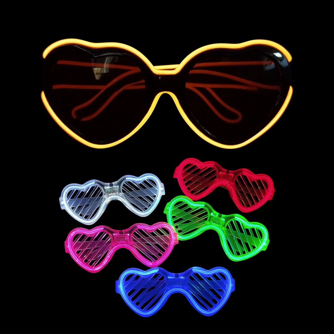 6 Lentes Flogger o Corazón Flogger Full LED, en colores vibrantes, perfectos para que los invitados compartan el brillo en la pista.
