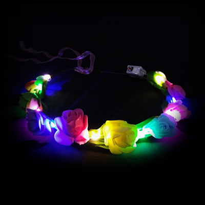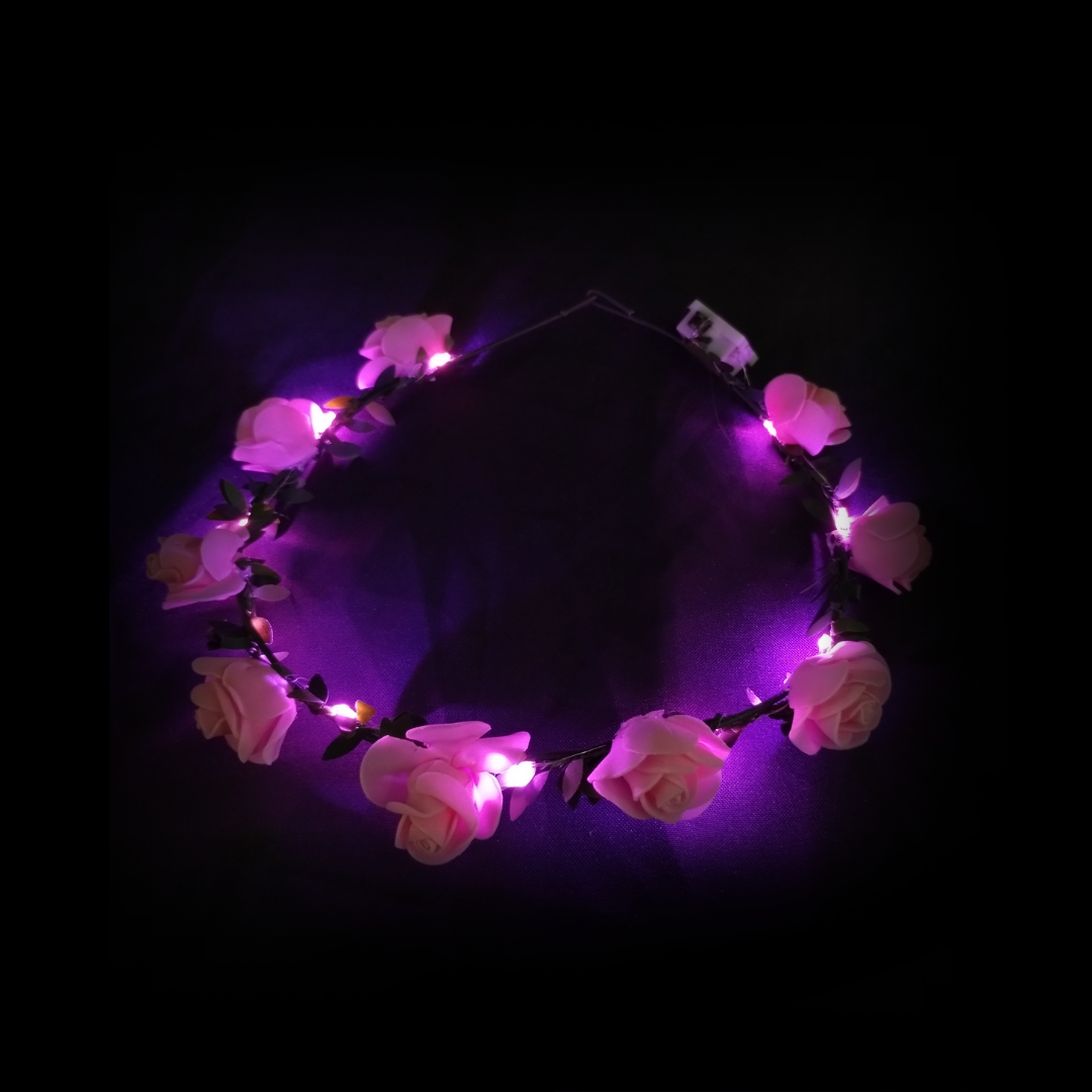 Una vincha luminosa que transforma cualquier look en un espectáculo brillante. Con sus 11 luces LED y delicadas florcitas de goma eva, esta tiara es perfecta para destacar en fiestas y eventos especiales. ✨🌸