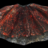Pollera tutu de tul negra con estampados rojos de telarañas: talle S adulto, cintura elástica (hasta 40 cm de diámetro) y 25 cm de largo.