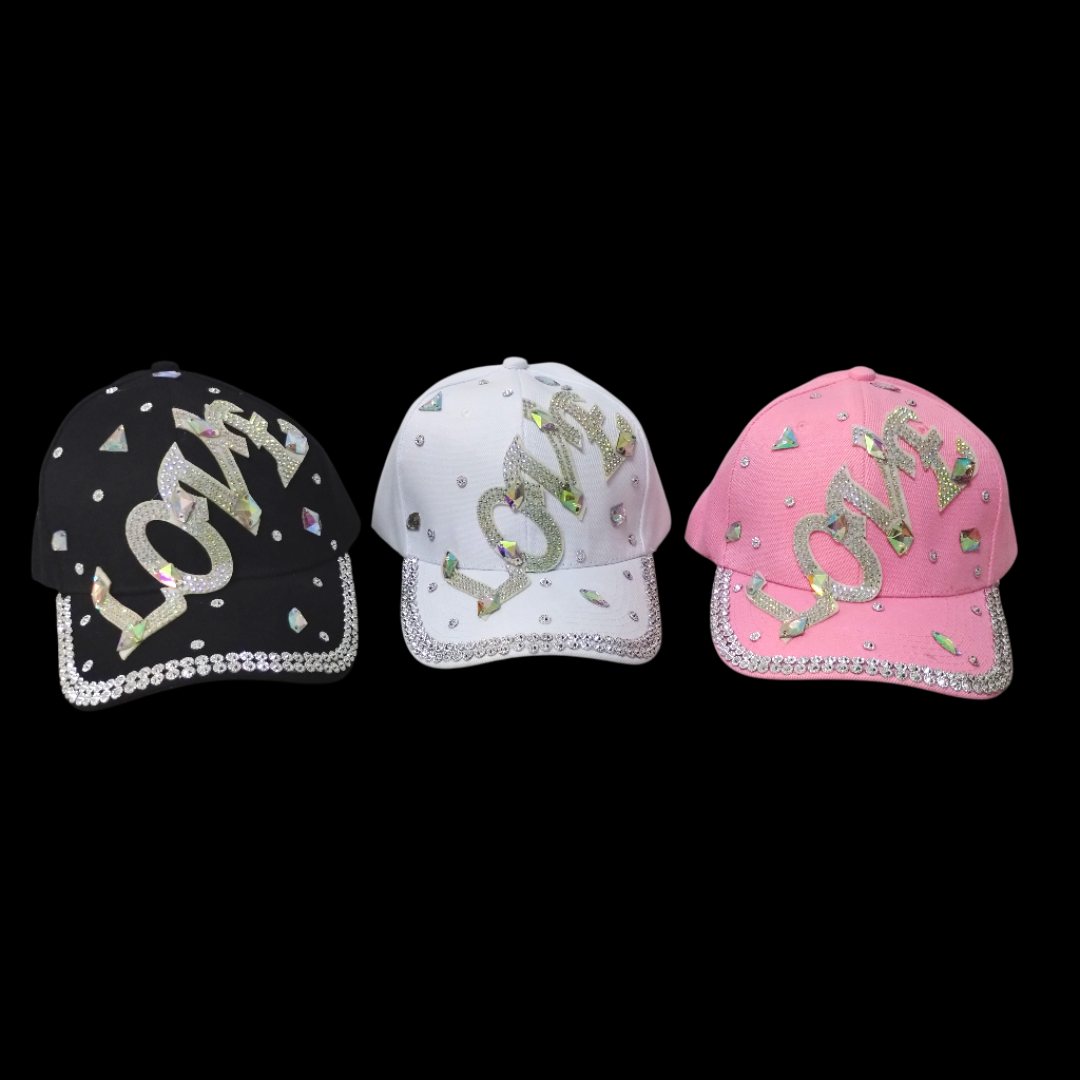 Destacate con esta gorra tipo cap con diseño moderno y súper brillante. Decorada con strass y la frase “LOVE”, es el accesorio ideal para sumar glamour y actitud a cualquier look.