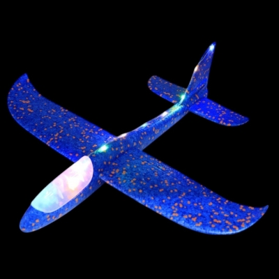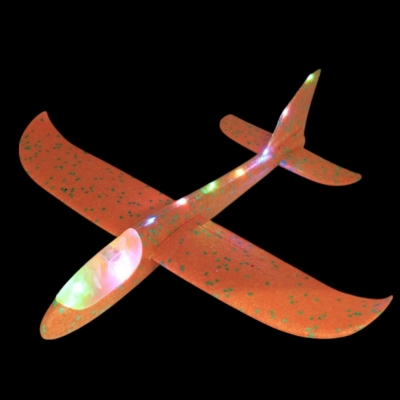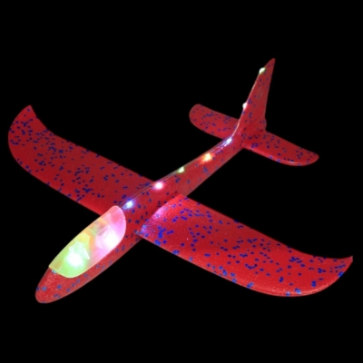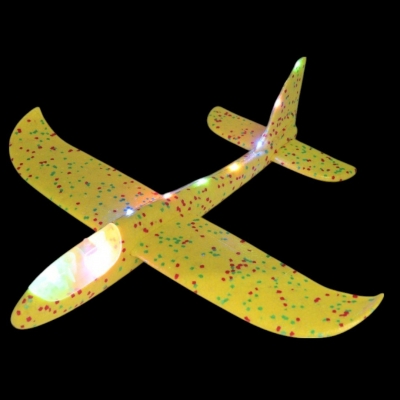 Avión de telgopor con luces LED, ideal para jugar al aire libre.