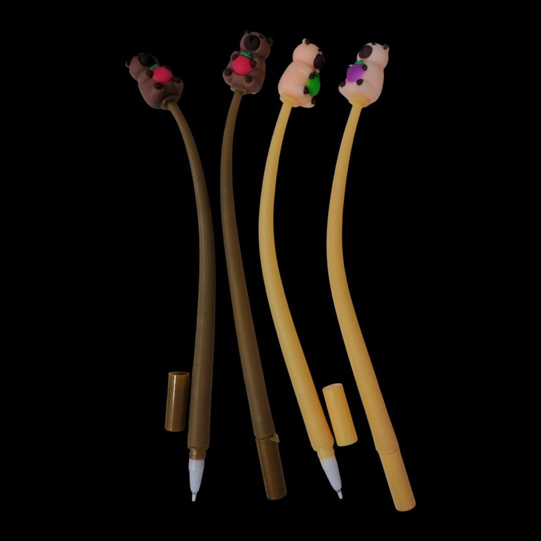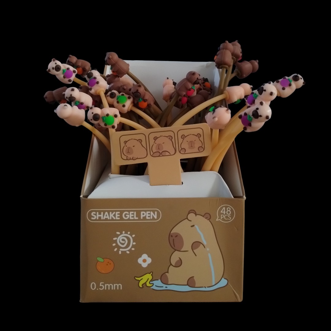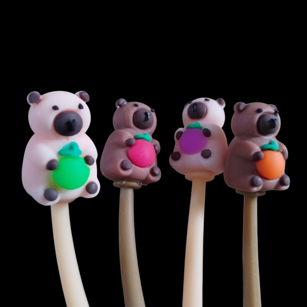 Divertidas y originales lapiceras con forma de capibara, perfectas para regalar, usar como souvenir o complemento de cotillón temático.