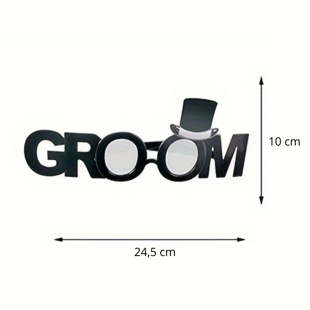 El accesorio perfecto para destacar en despedidas de soltero, casamientos y fiestas temáticas. Estos lentes negros con diseño “Groom” incorporan una divertida galera en la parte superior, aportando un toque elegante y canchero al look.