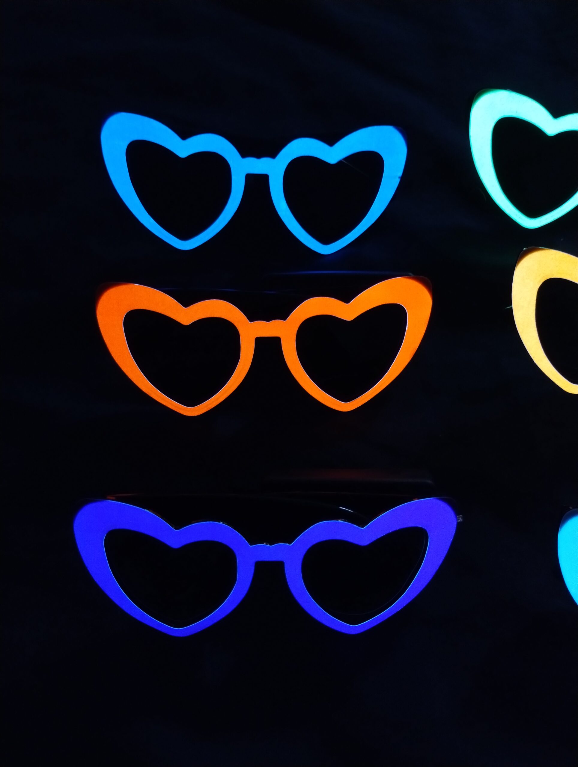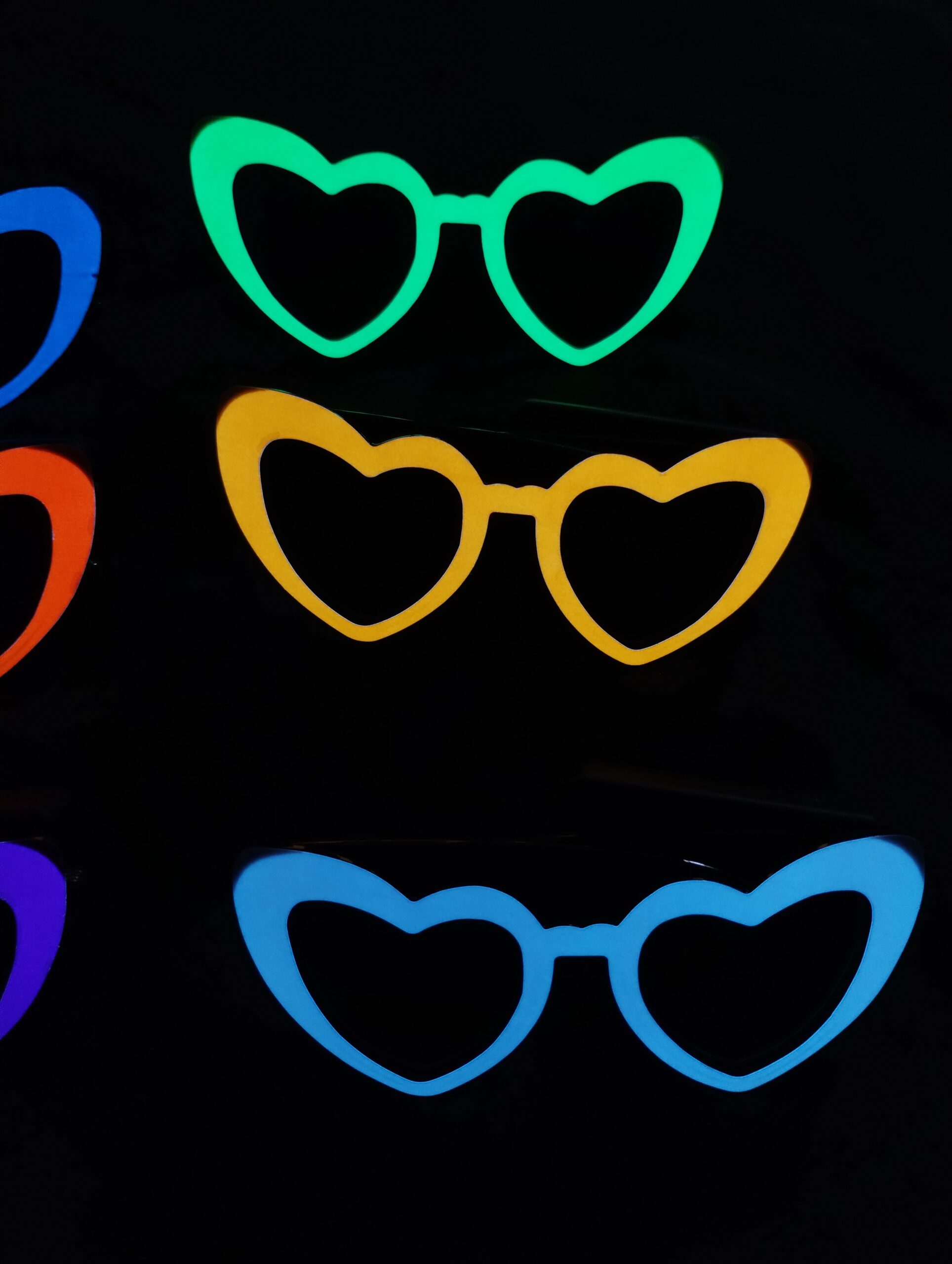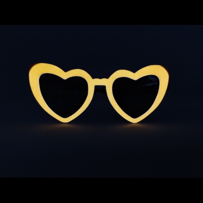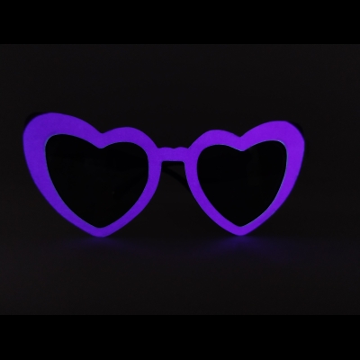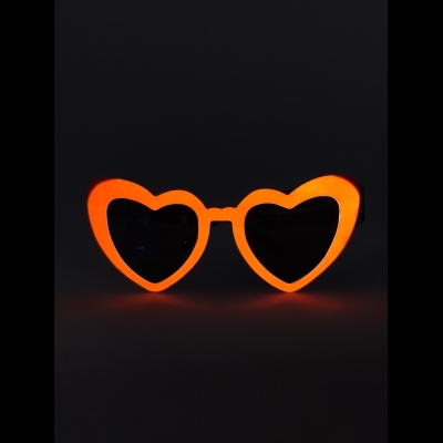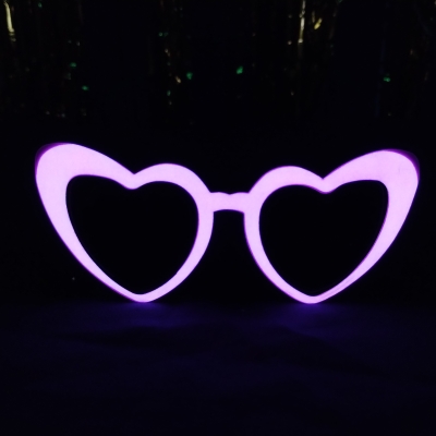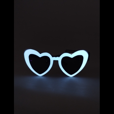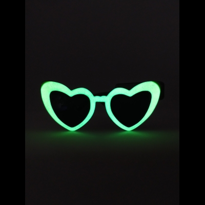 Dale un toque único y luminoso a tu look con estos lentes retro en forma de corazón, diseñados para brillar en la oscuridad y resaltar en cualquier fiesta.