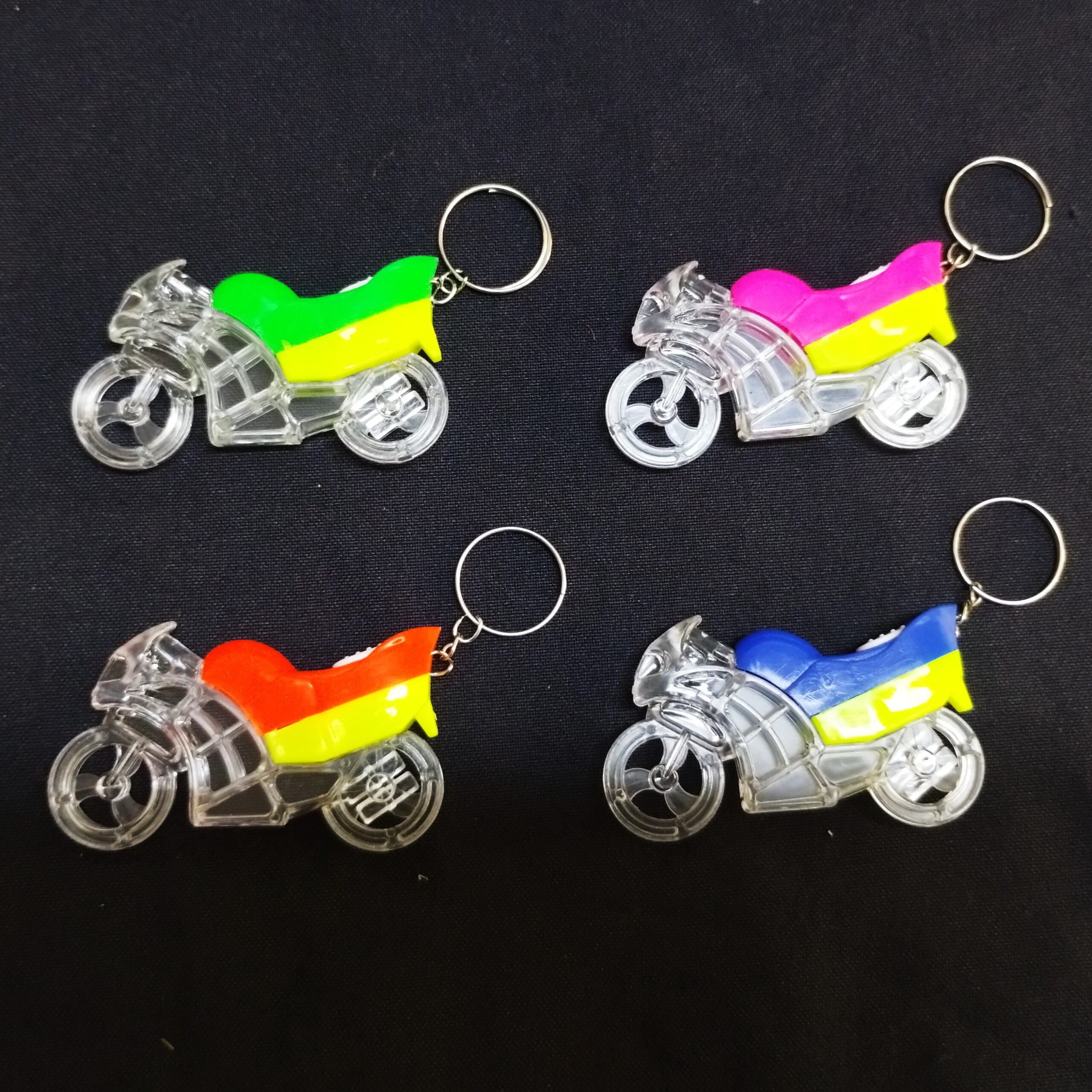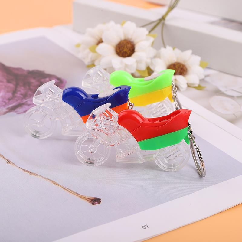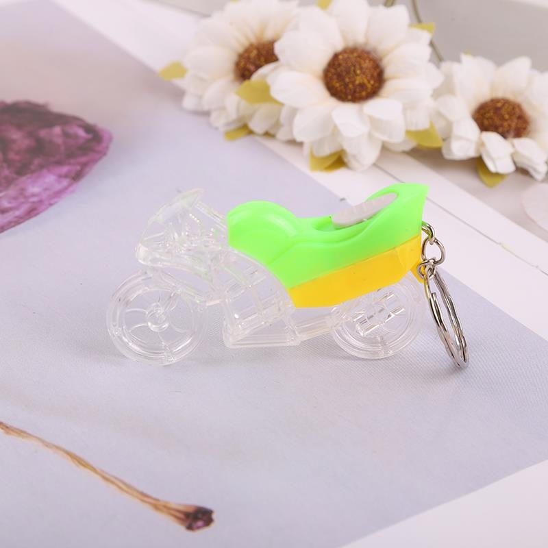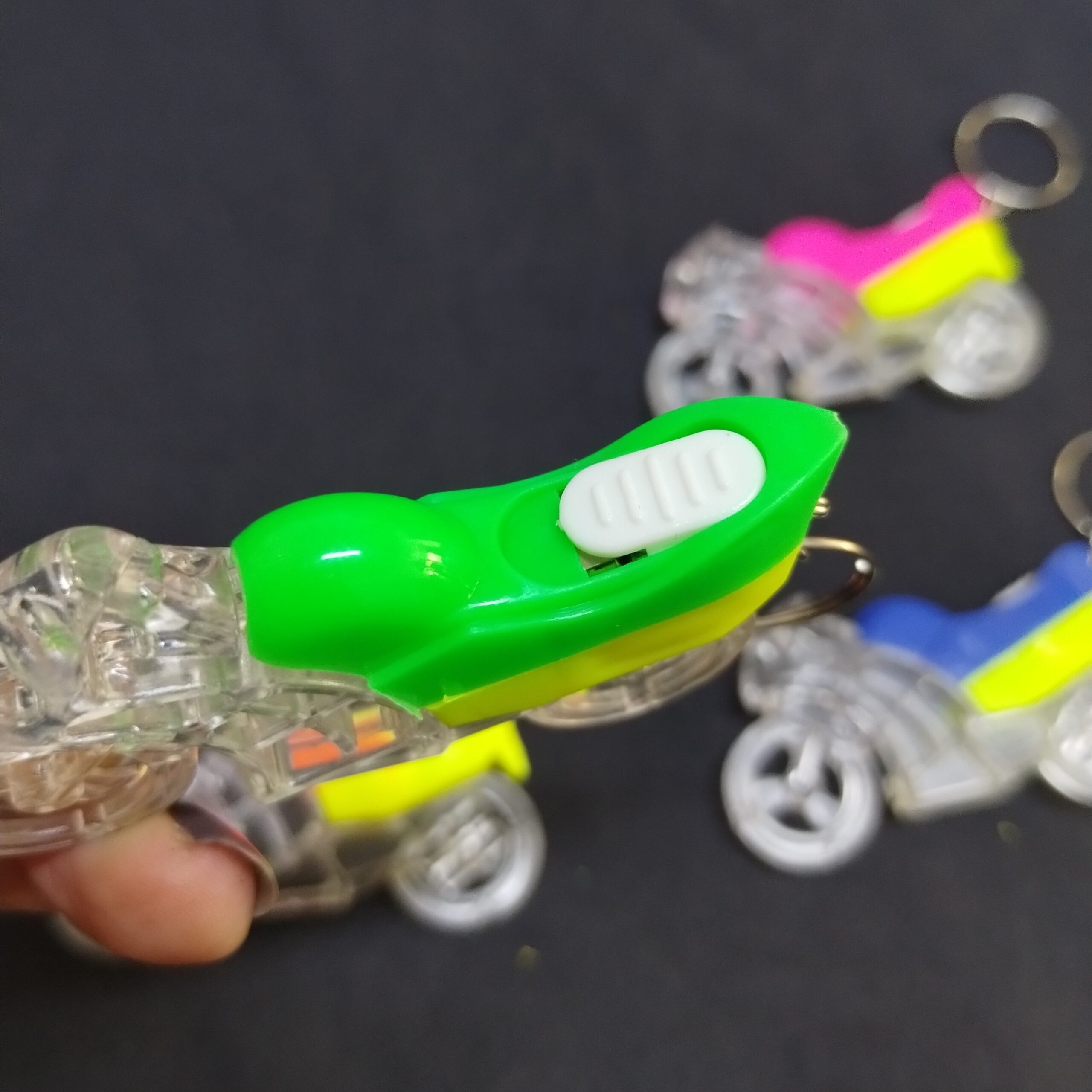 Divertido llavero con diseño de moto, ideal para darle un toque original y llamativo a tus llaves, mochila o bolso. Al activarlo, emite luz LED intermitente en colores vibrantes, perfecto para destacar tanto de día como de noche.