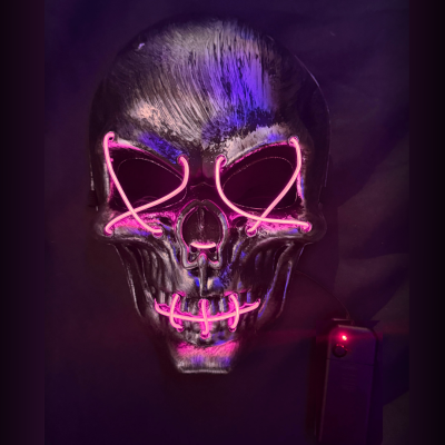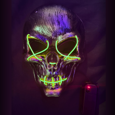 Impactá en cualquier fiesta con esta máscara de calavera con luz LED estilo neón, ideal para destacar en la oscuridad y crear un look único y llamativo.
