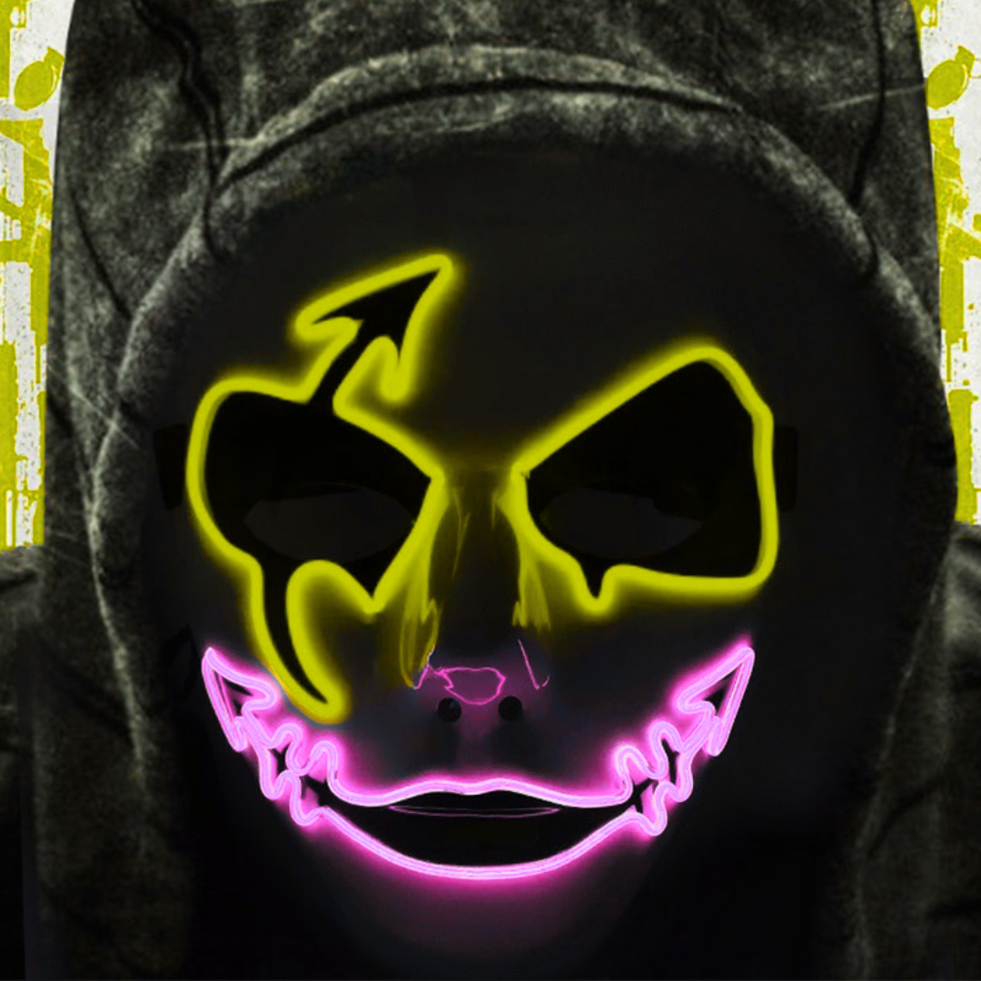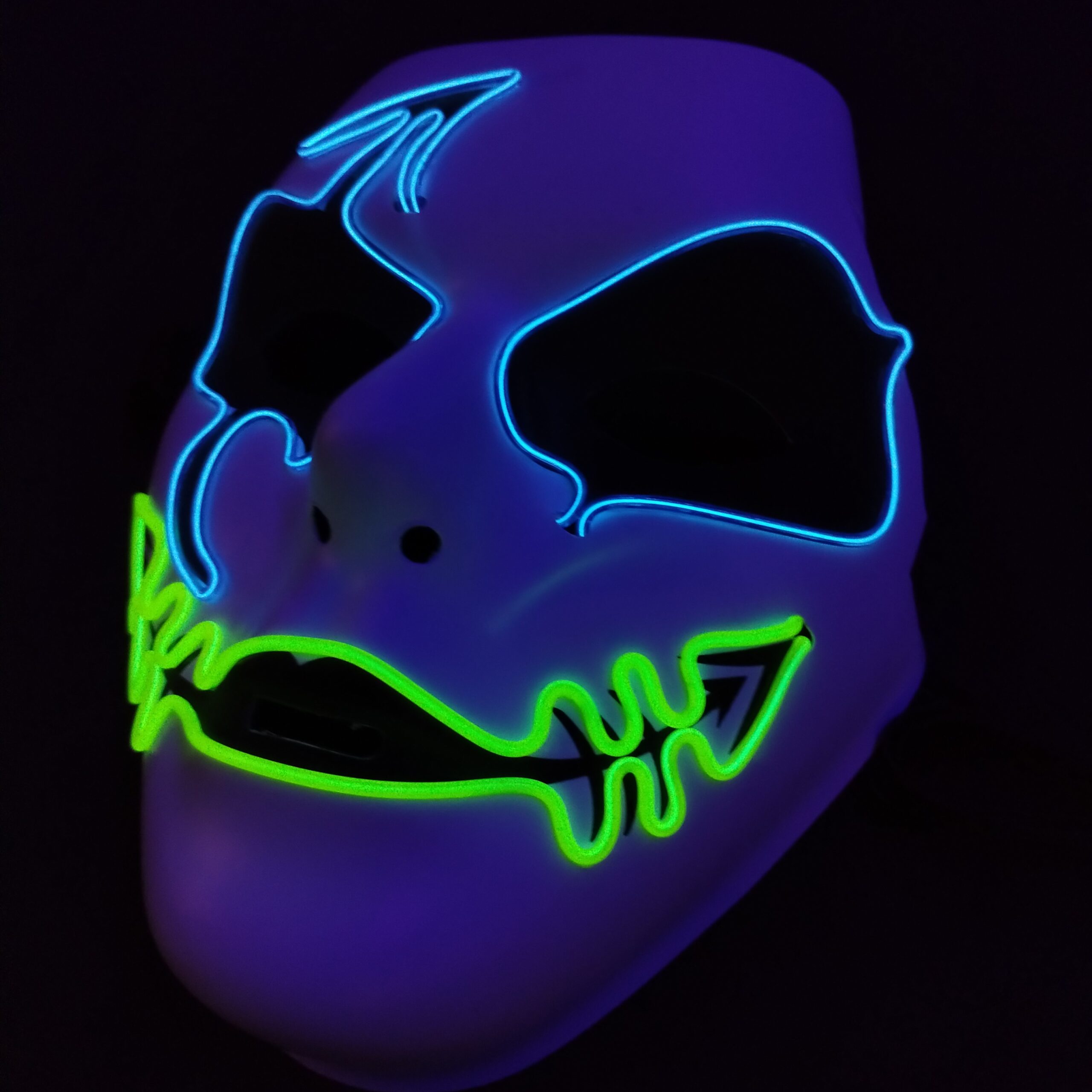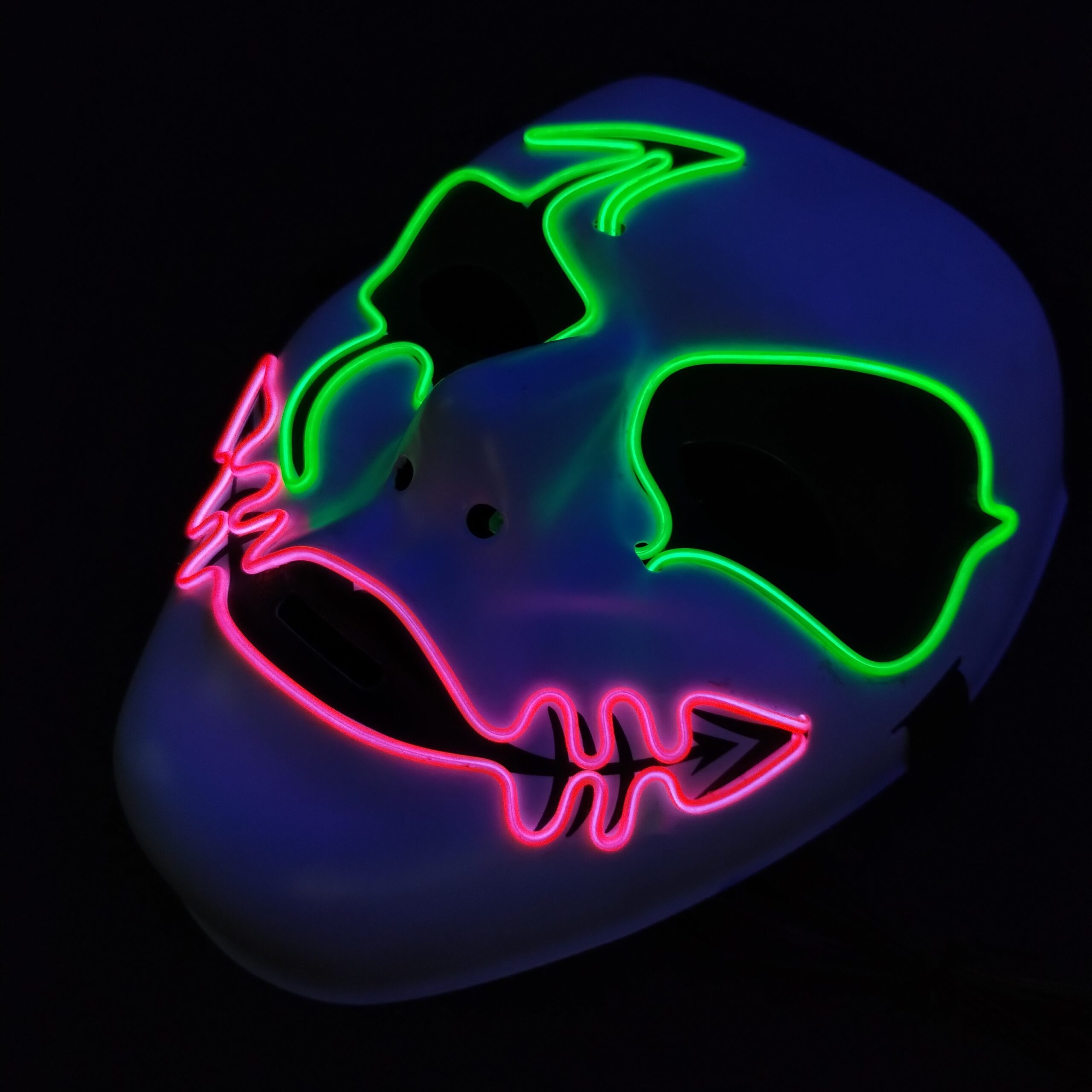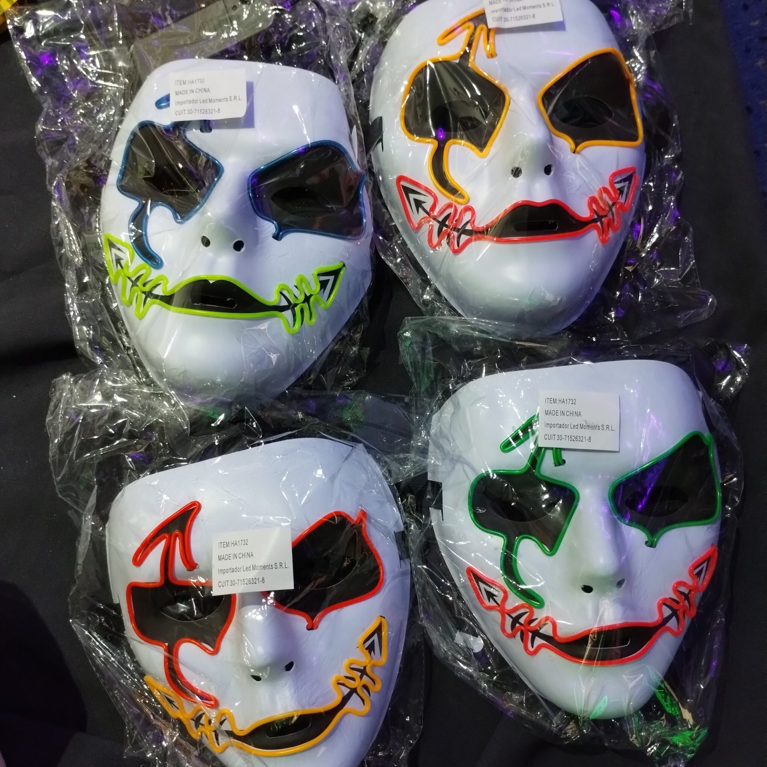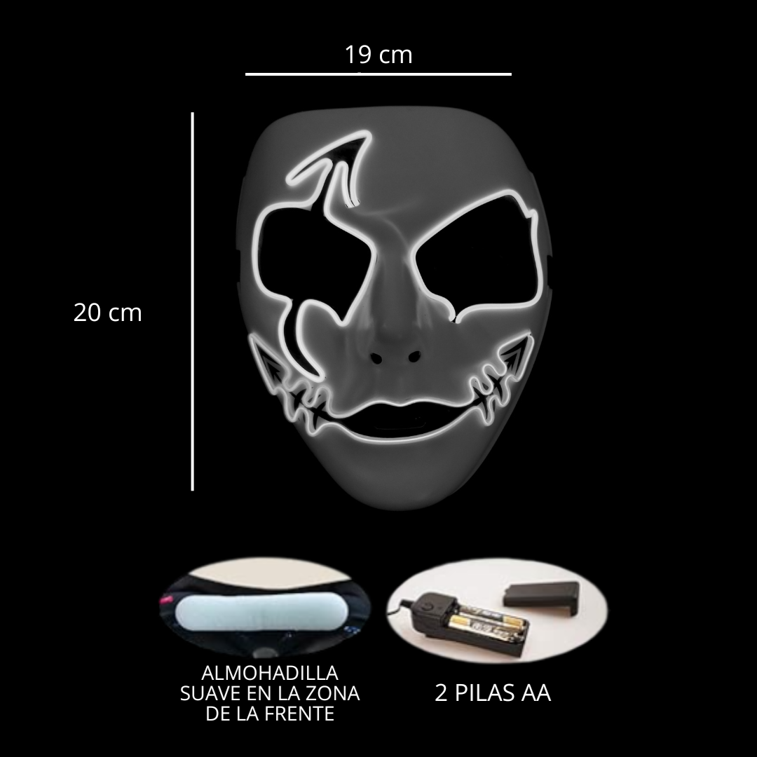 Máscara Scar LED, ideal para destacar en fiestas, eventos y noches temáticas. Con un diseño llamativo y colores vibrantes, brinda un efecto luminoso impactante que resalta en la oscuridad.