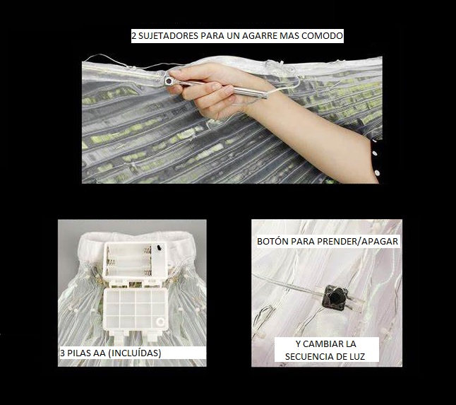 Luz LED con 3 secuencias, cable extensible y botón de encendido.