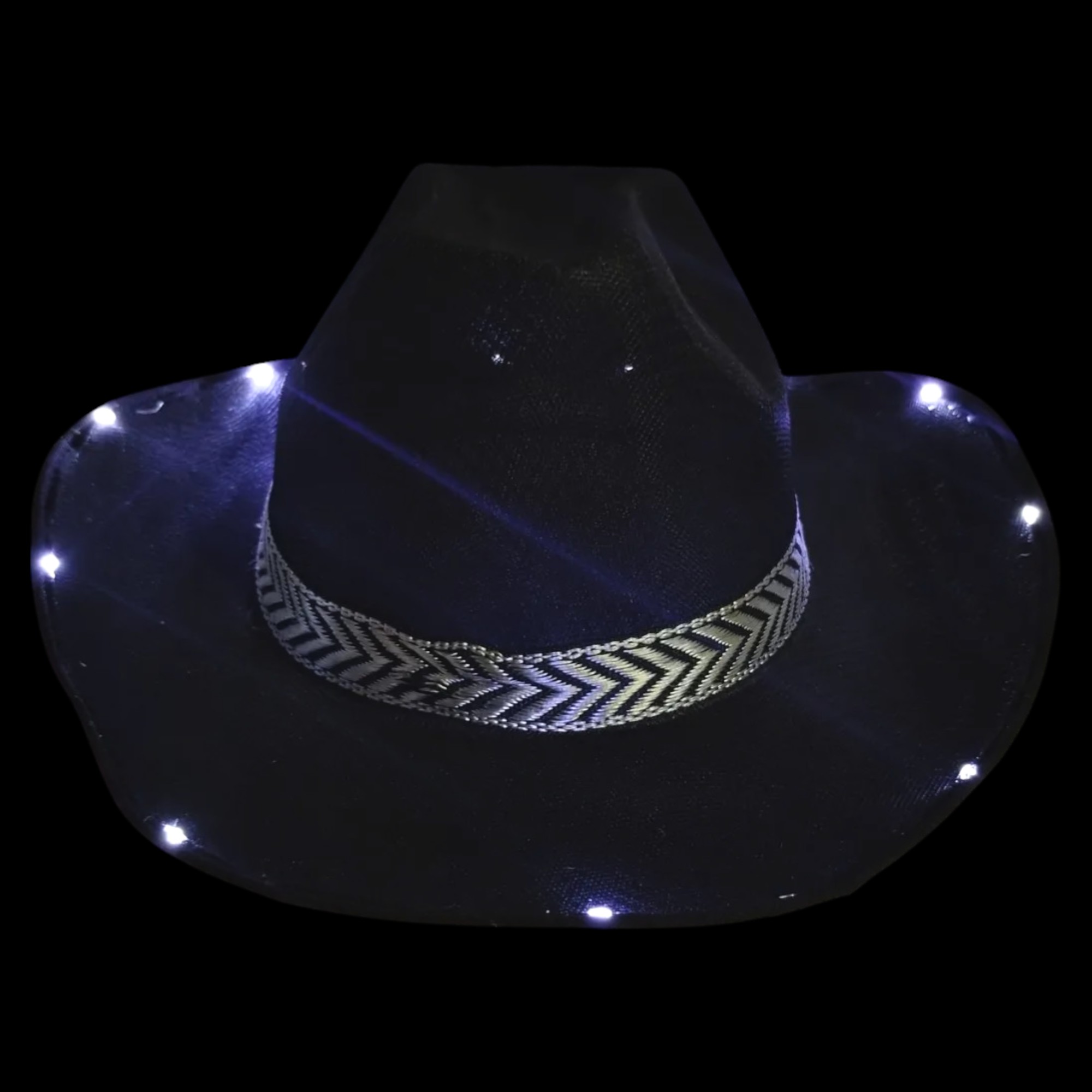Un accesorio original que combina lo clásico del estilo cowboy con un toque luminoso moderno. ¡Perfecto para no pasar desapercibido!