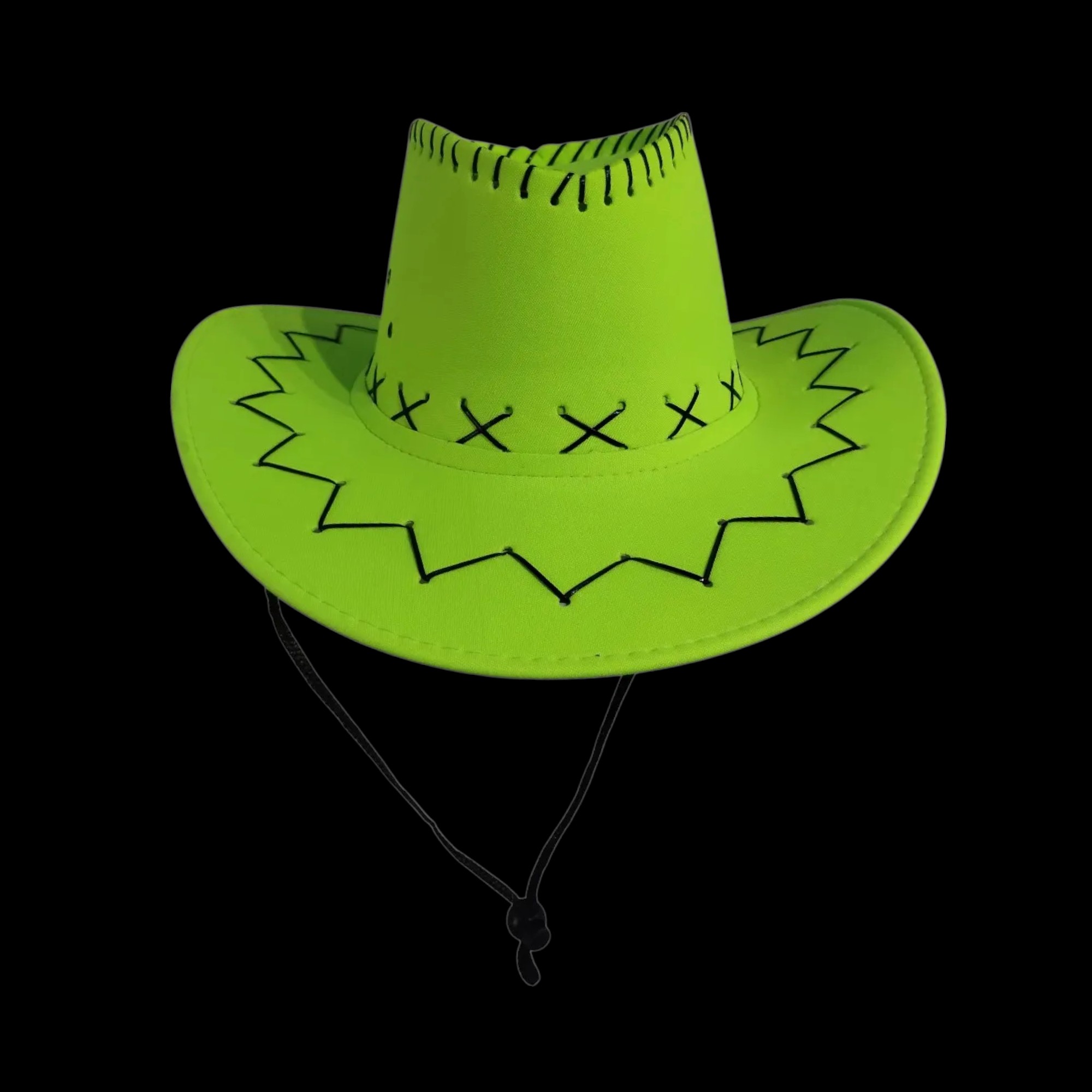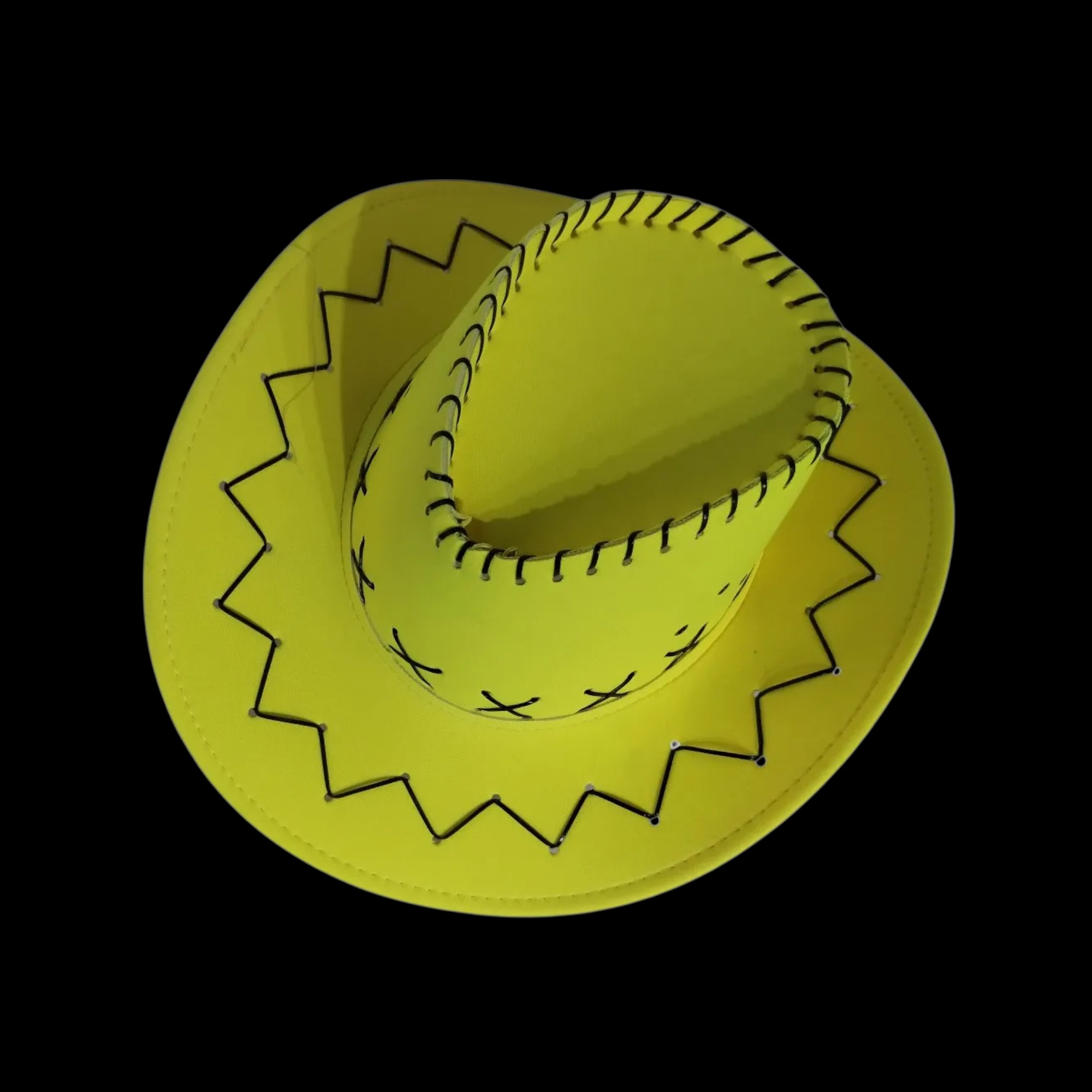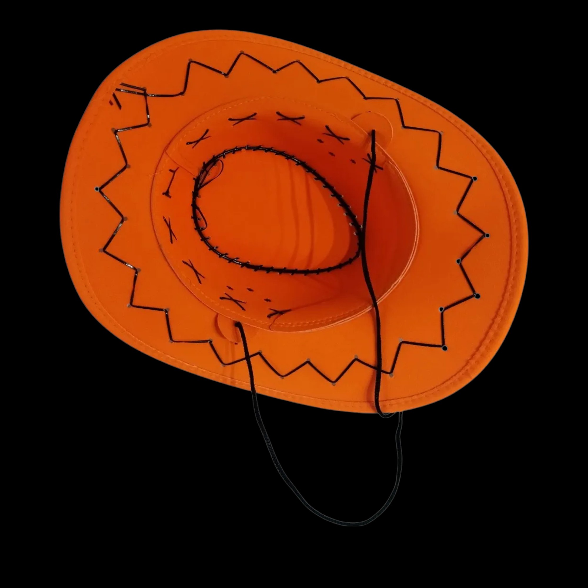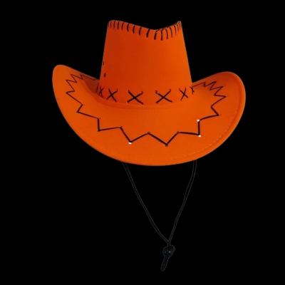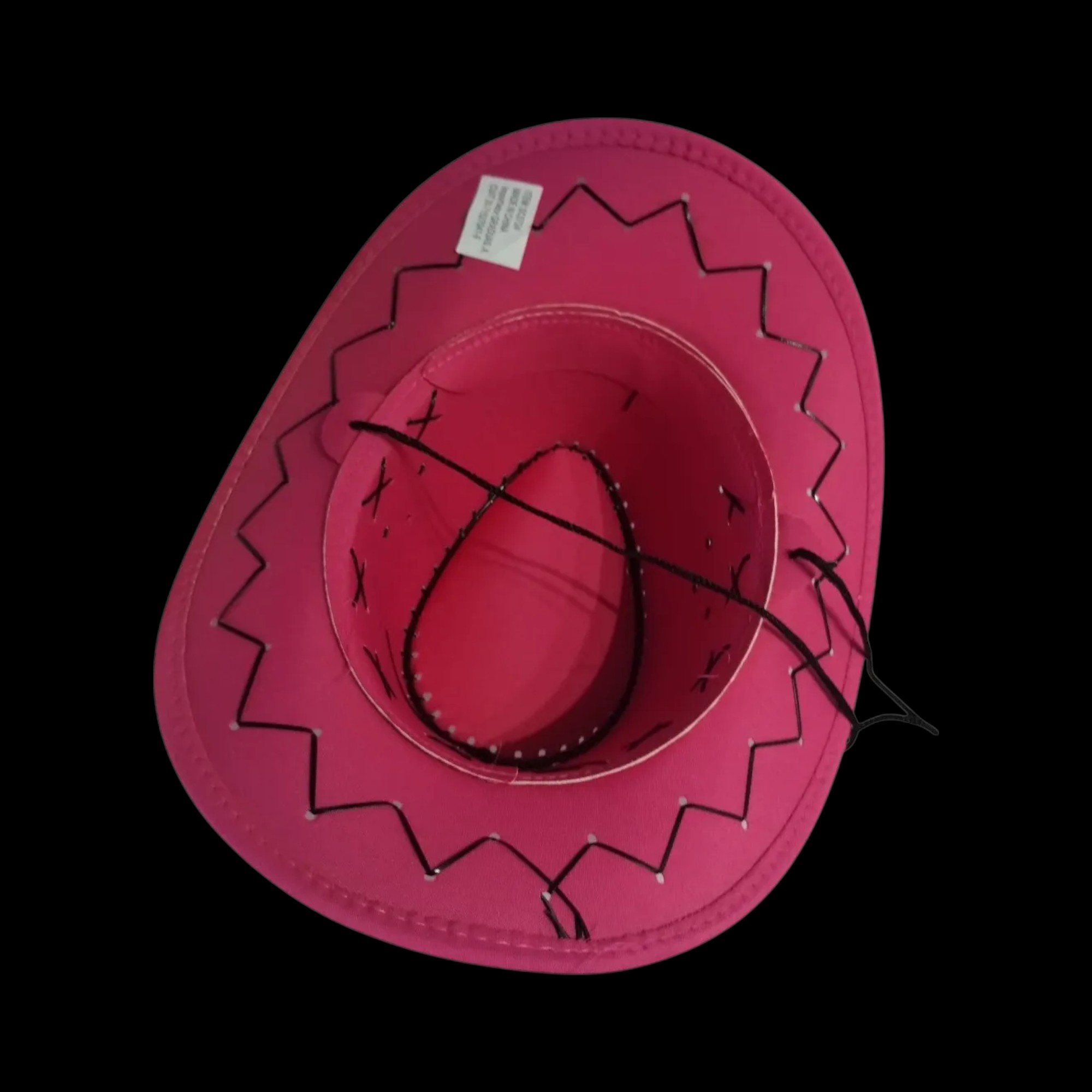 Este sombrero estilo vaquero en tela con detalles en cuerina negra es el accesorio ideal para un look divertido y con personalidad.