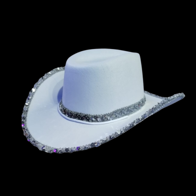 Dale un toque de estilo y brillo a tu look con este sombrero vaquero exclusivo de cotillón, perfecto para fiestas temáticas, shows y celebraciones especiales.