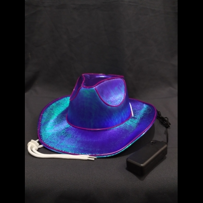 Este sombrero vaquero de tela tornasolada con luces LED es el accesorio perfecto para destacar en la fiesta con todo el brillo y estilo.