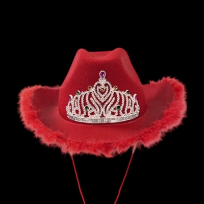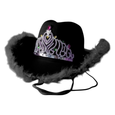 🔹 Diseño cowgirl con detalles de plumitas y corona decorativa