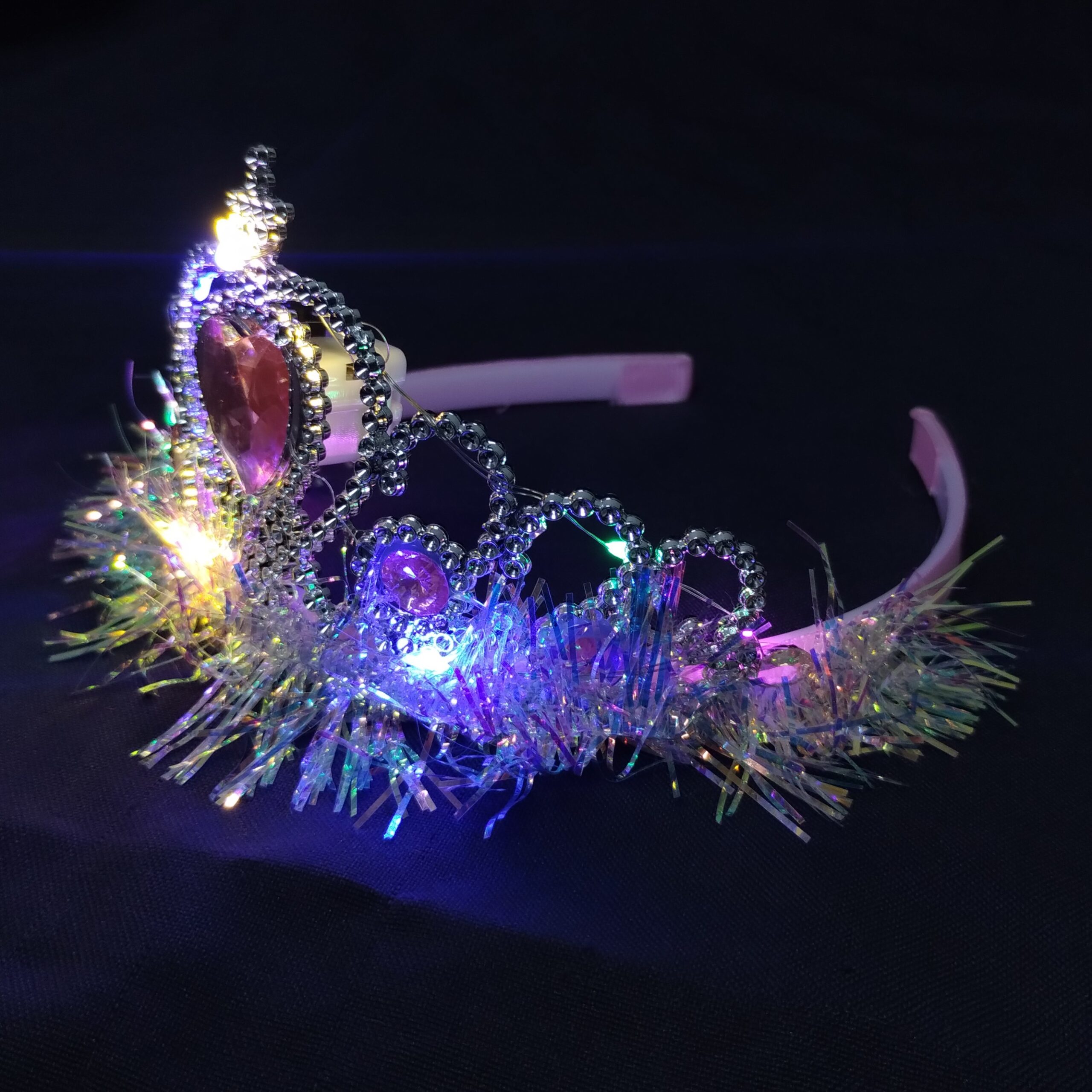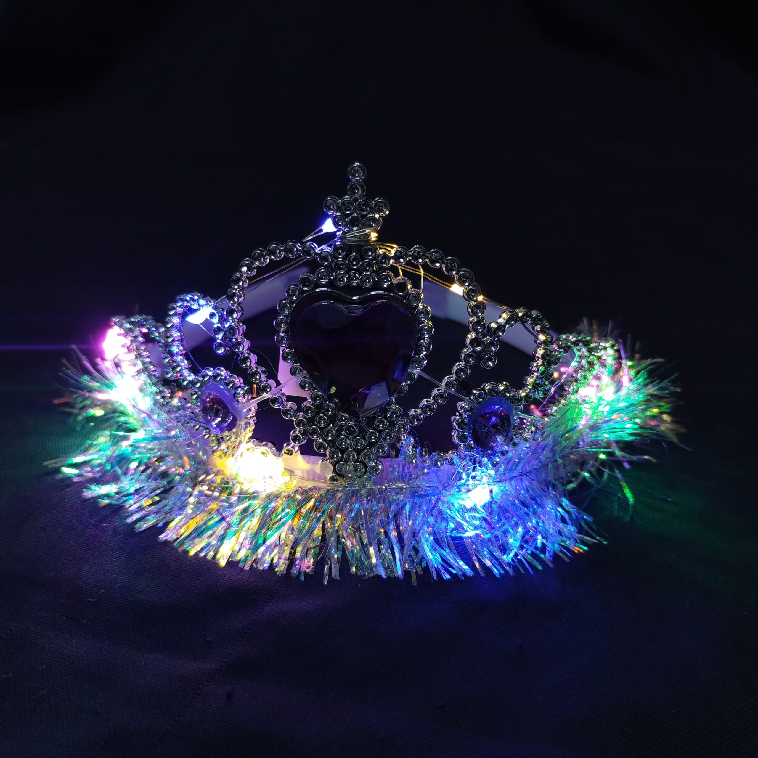 ¡Convertite en la reina de la noche con nuestra Tiara Real Corazón LED! Este accesorio combina el diseño clásico de una corona de princesa con un despliegue tecnológico de luces multicolor que garantiza que todas las miradas estén sobre vos. Es el complemento ideal para Quinceañeras, novias divertidas o para darle ese toque VIP a cualquier fiesta.