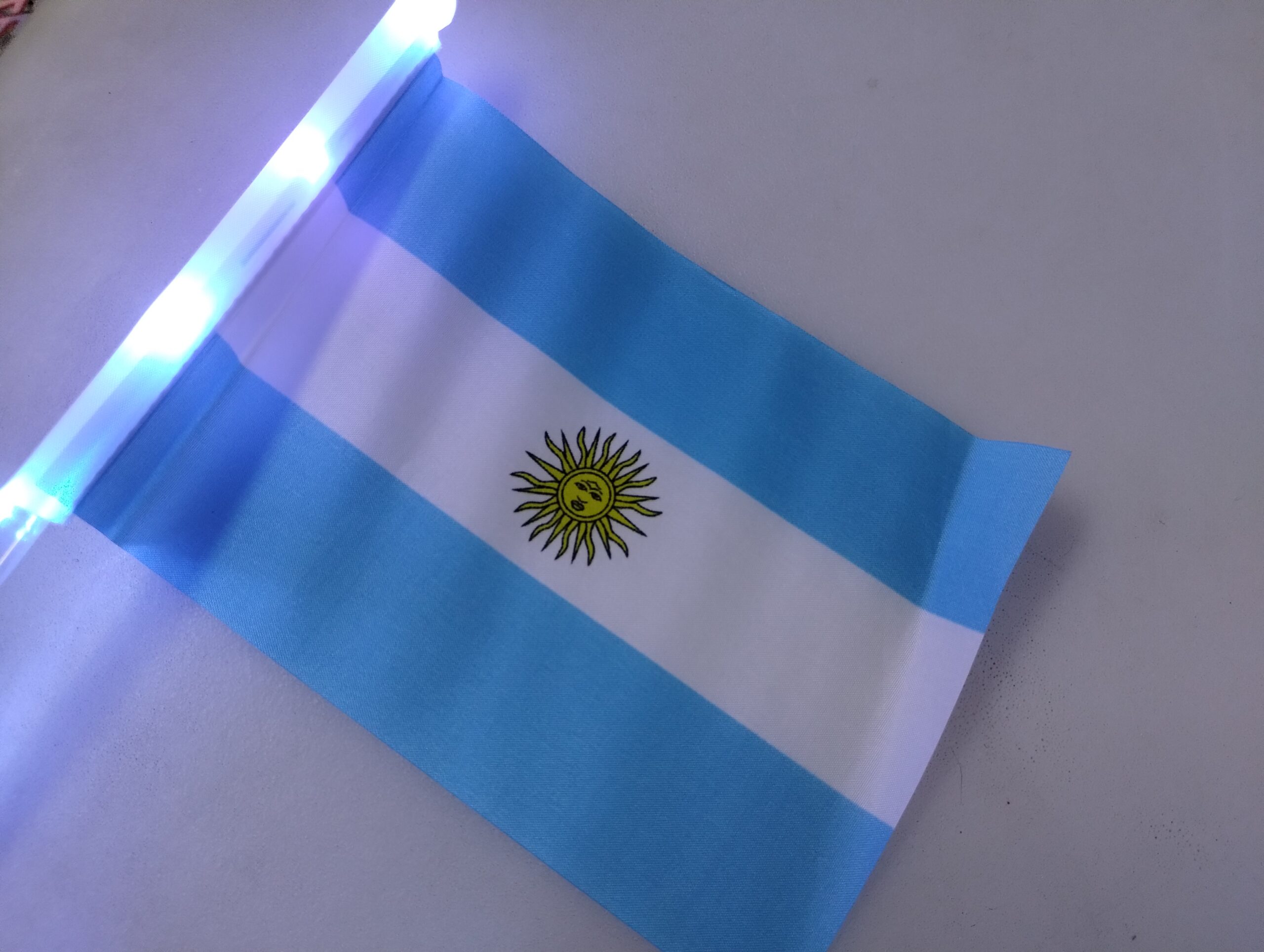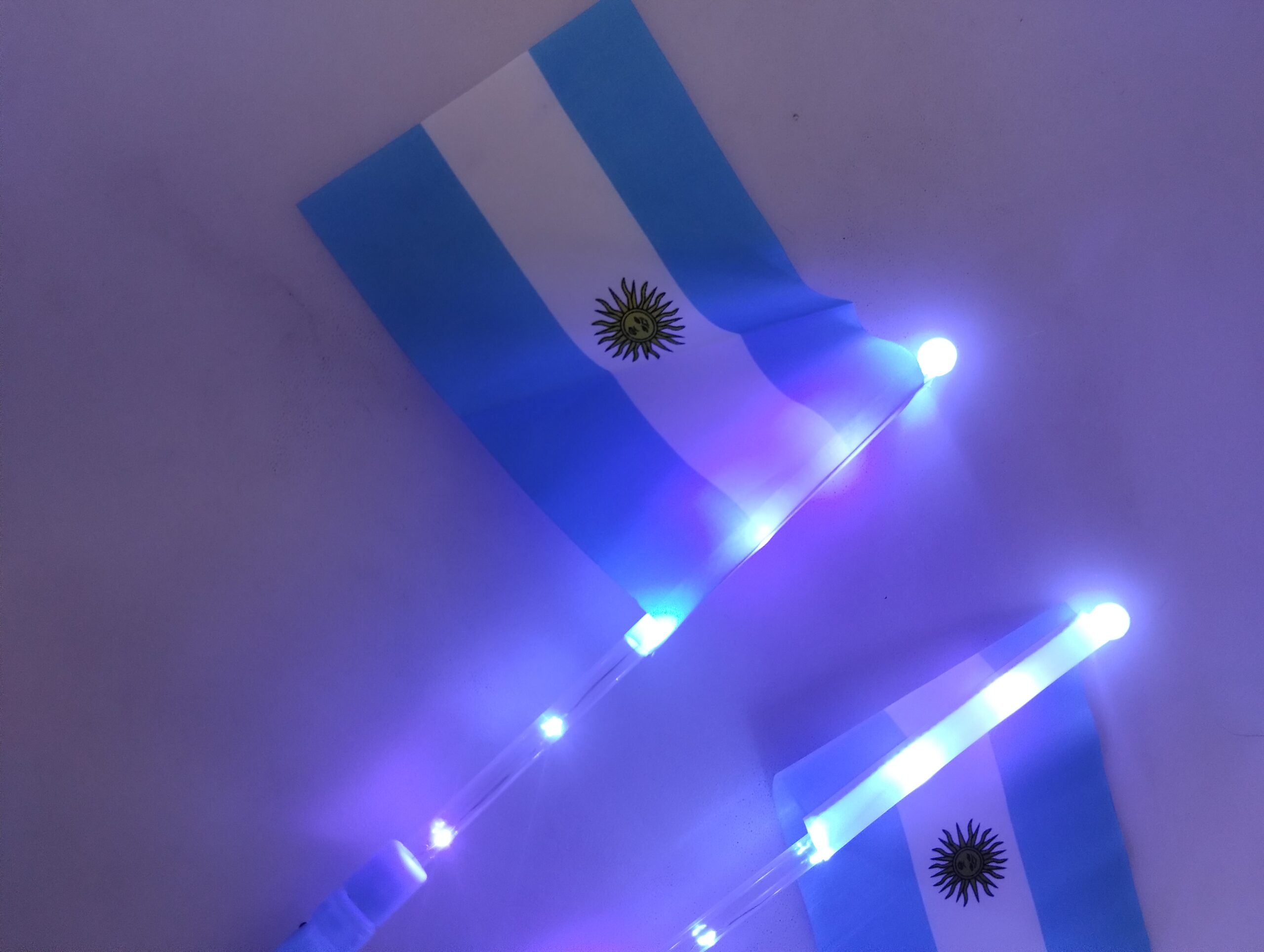 Estas banderitas de Argentina con luces LED son el accesorio perfecto para alentar, celebrar y destacar en cualquier evento. Con un diseño clásico y un mango luminoso, combinan lo tradicional con un toque moderno y llamativo.