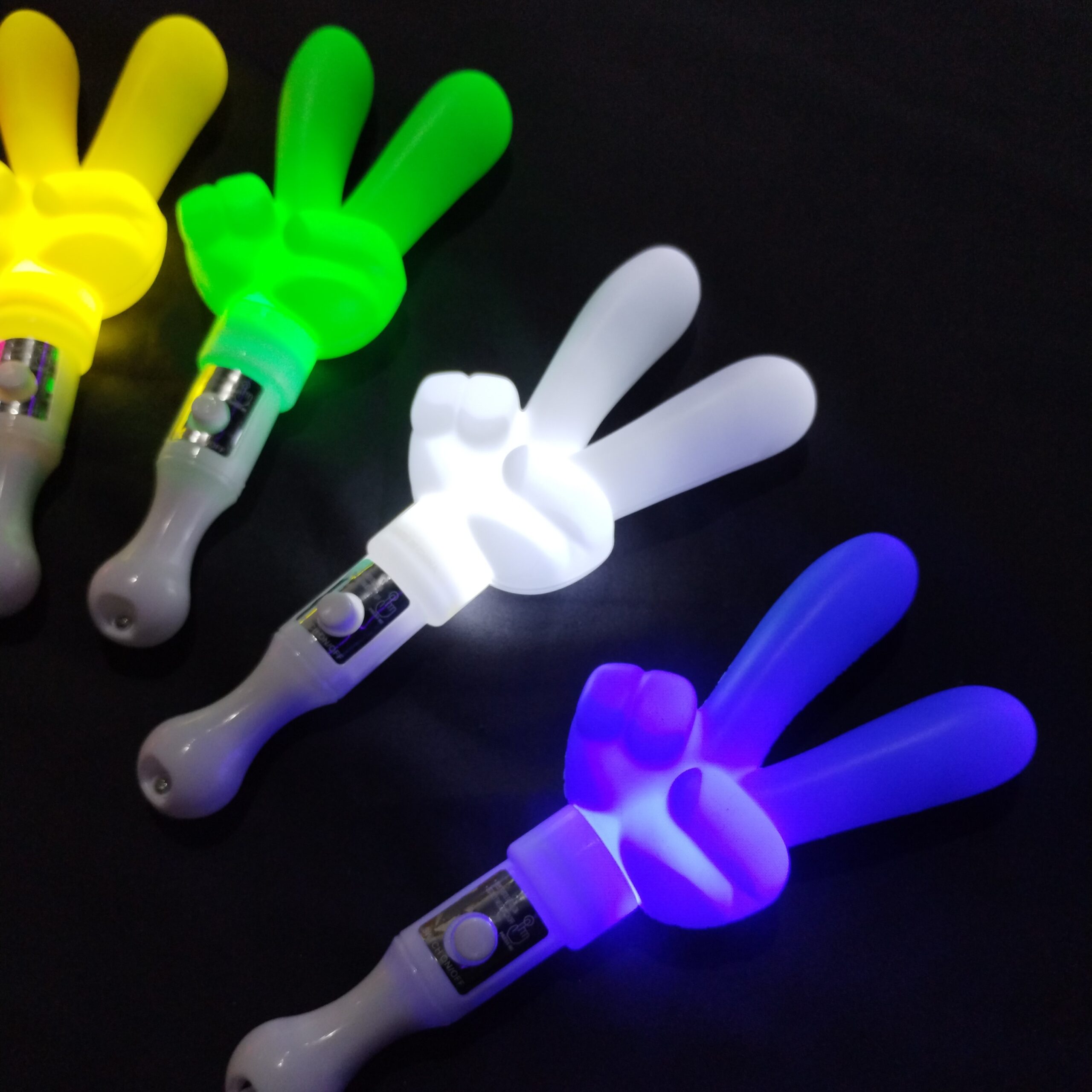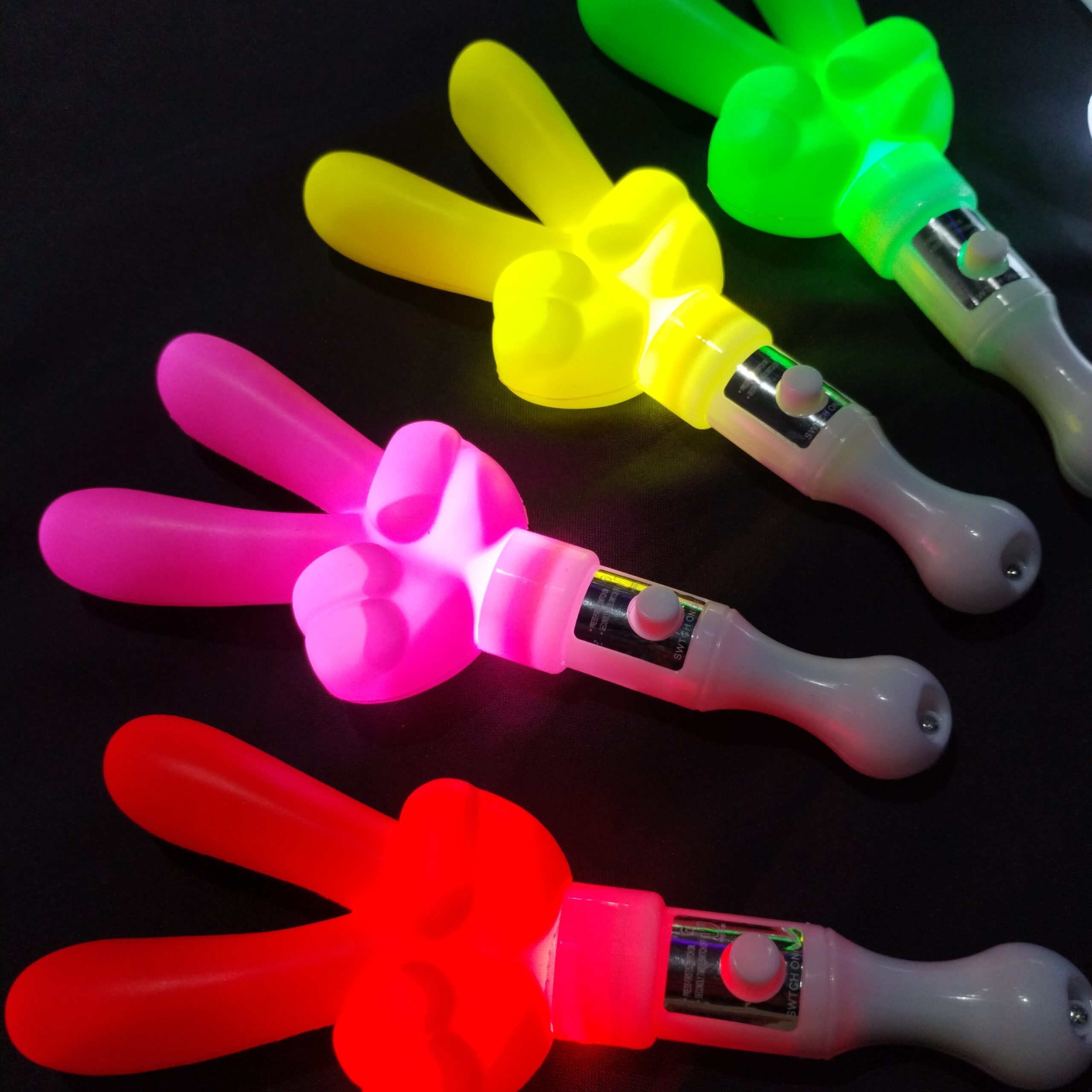 Divertidas varas luminosas con diseño de mano “peace”, ideales para fiestas, cumpleaños y eventos