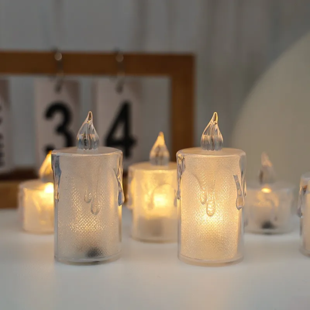 Iluminá tus espacios con estas velitas de acrílico LED en su versión más grande. Disponibles en diseños derretida y facetada, ofrecen una luz cálida que aporta realismo, calidez y estilo a cualquier ambiente, sin riesgos de fuego.