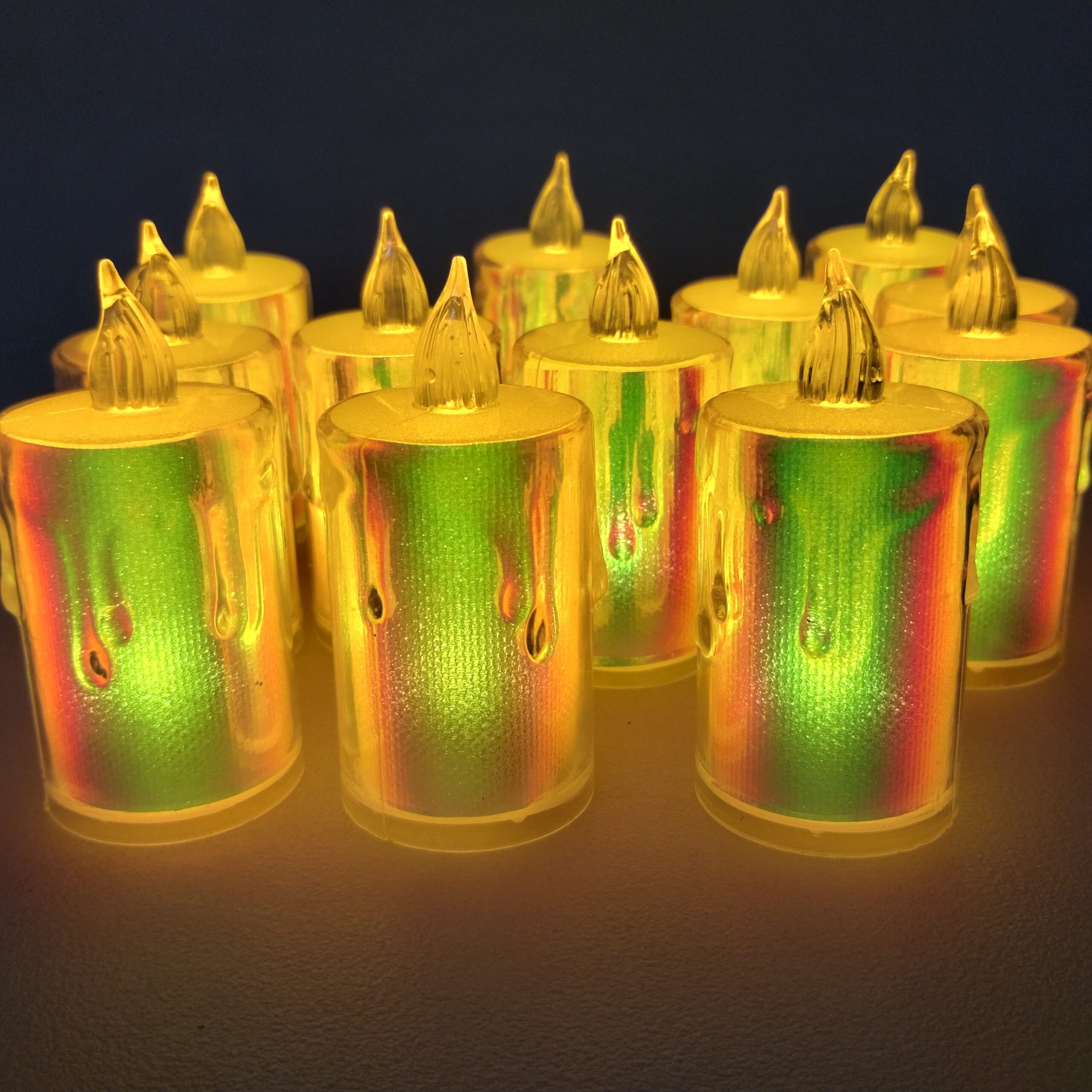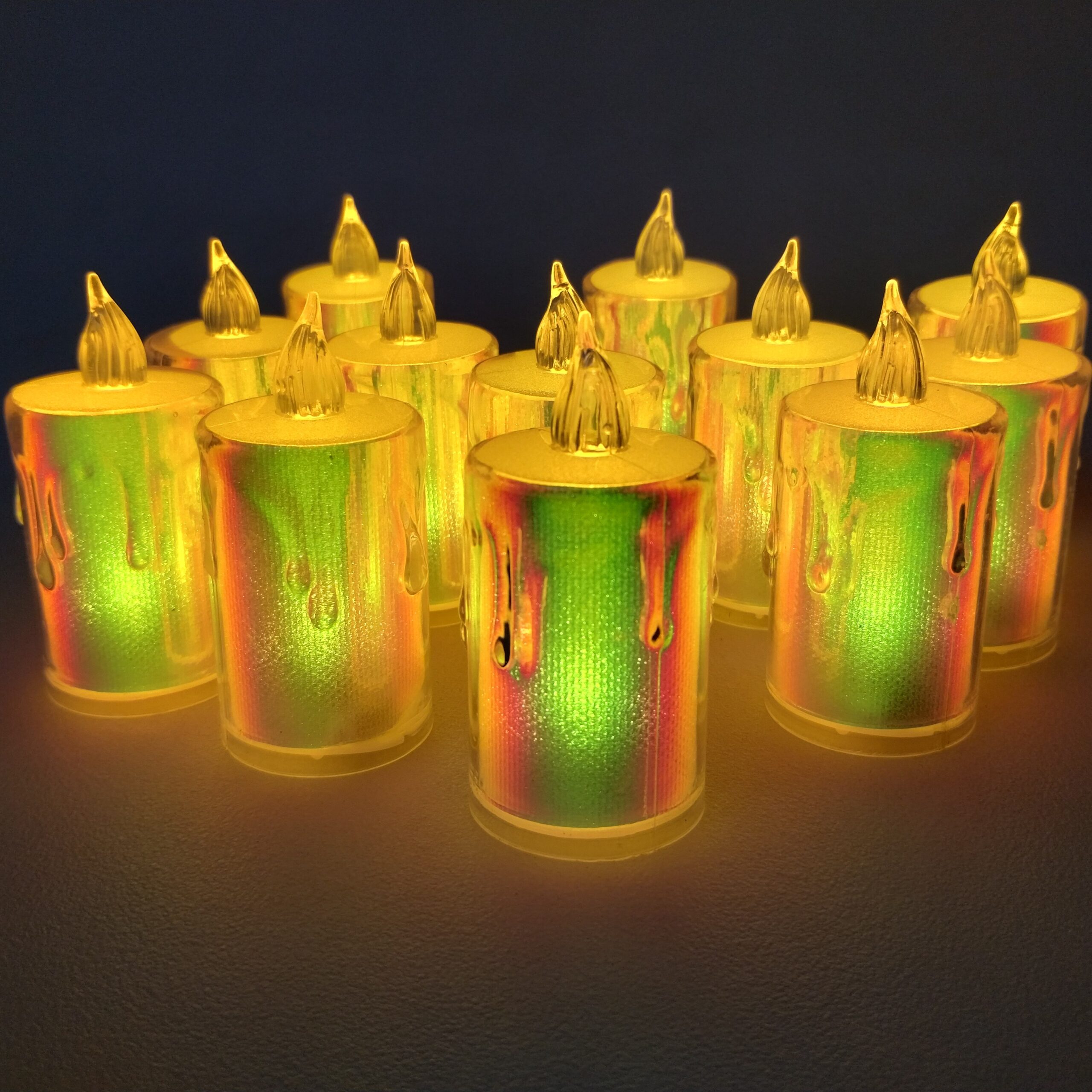 Iluminá tus espacios con estas velitas de acrílico LED en su versión más grande holográfica. Disponible en diseño derretida ofrecen una luz cálida que aporta realismo, calidez y estilo a cualquier ambiente, sin riesgos de fuego.