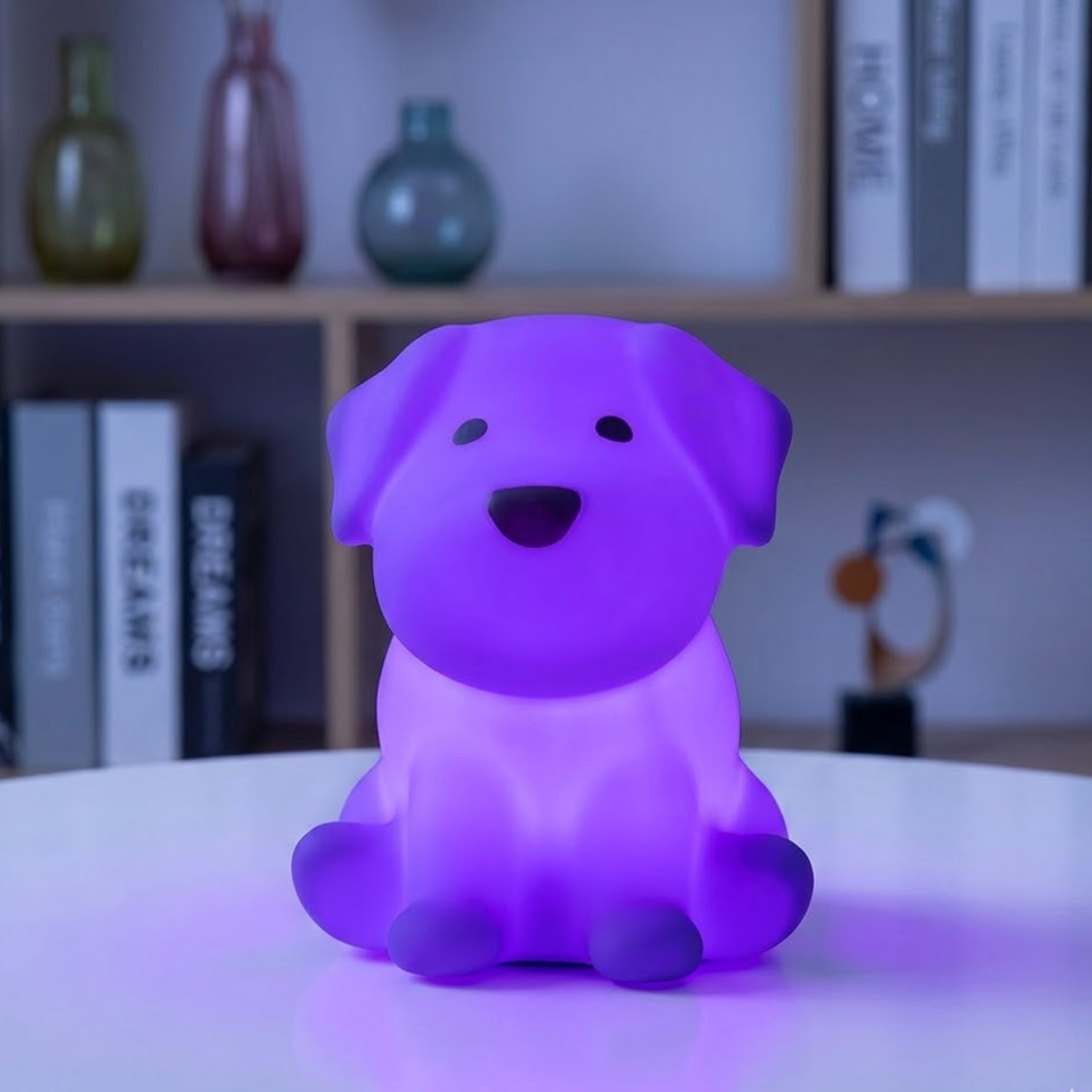 Iluminá las noches de los más chicos con este adorable velador táctil con forma de perrito, suave y divertido al tacto. Fabricado en silicona flexible tipo squishy, es perfecto para apretar, jugar y relajarse.