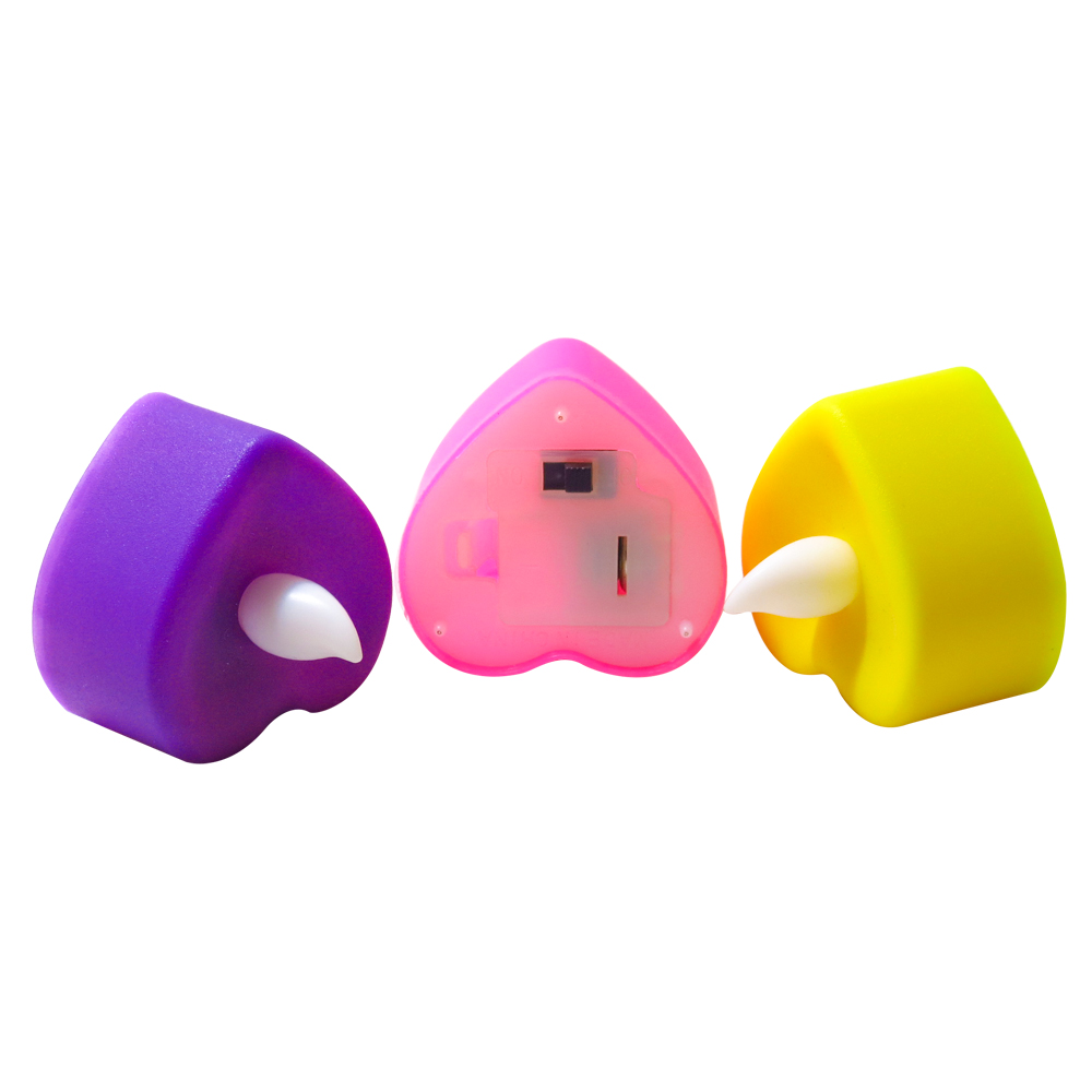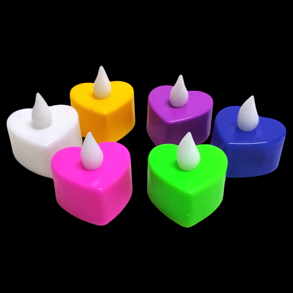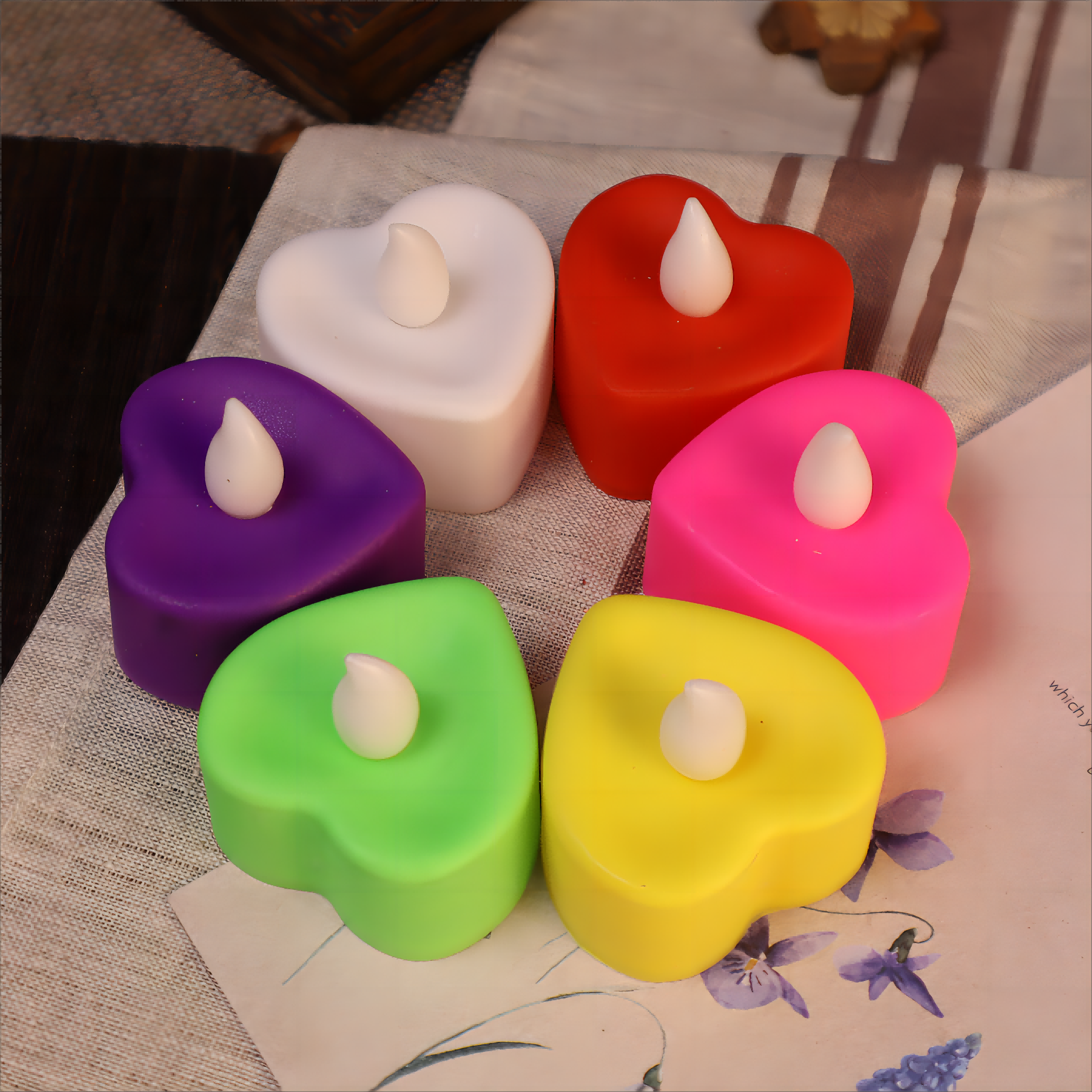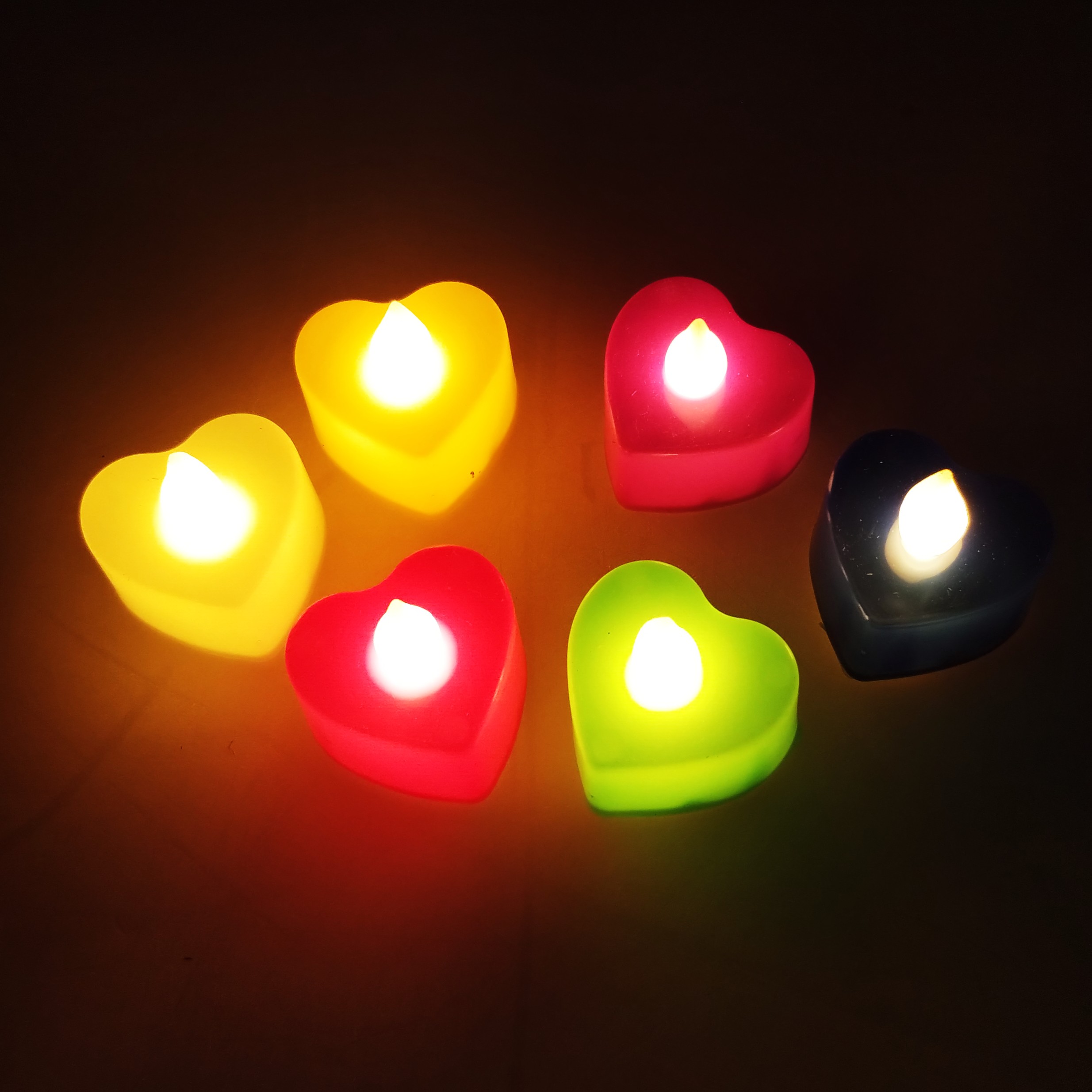 Velitas LED con diseño de corazón, ideales para decorar y crear ambientes cálidos y románticos sin riesgo. Emiten una luz blanca cálida que simula el efecto de una vela real.