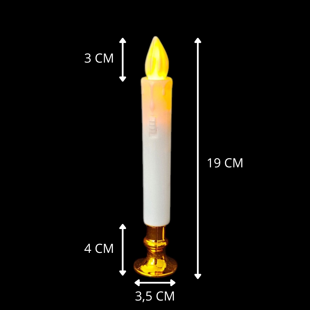 Sumá elegancia y calidez a tus espacios con este set de velas LED altas de 19 cm, estilo candelabro. Su diseño con base plástica dorada aporta un toque sofisticado, ideal para decoraciones modernas o clásicas.