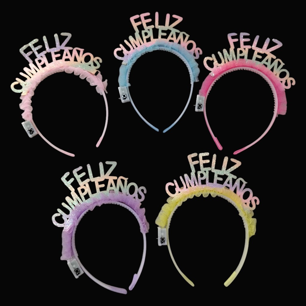 Vinchas LED “Feliz Cumpleaños”, el accesorio perfecto para destacar en cualquier festejo. Con un diseño divertido y brillante, estas vinchas combinan letras con glitter y luces multicolor que le dan un toque único y festivo.